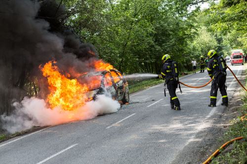 Už při příjezdu hasičů z Bílovce hořel celý renault vydatným plamenem. I tak dostali oheň jedním proudem vody C (zasahovali v dýchací technice) pod kontrolu za tři minuty, další tři minuty jim zabralo dohašování. To už přijeli hasiči ze Skřipova, ale mohli bez práce odjet zpět na základnu.