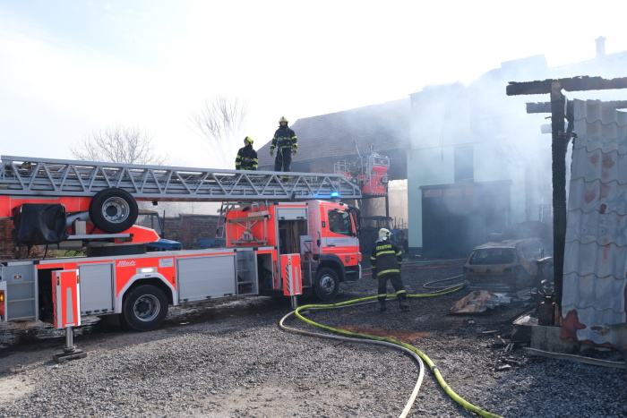 Požár rodinného domku a garáže s vozidly na Opavsku