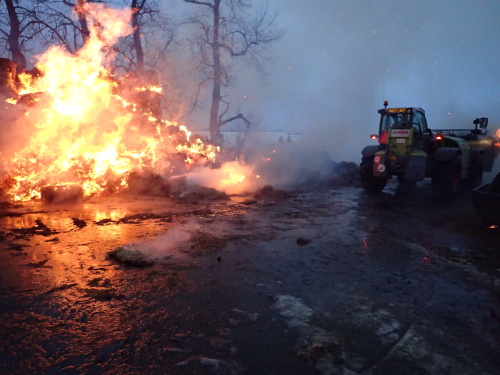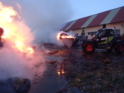 Hasiči dostali oheň pod kontrolu během deseti minut, po dohodě s majitelem nechali stoh kontrolovaně dohořet. Dvěma vodními proudy ale ochraňovali sousední objekt kravína s 50 kusy skotu.
