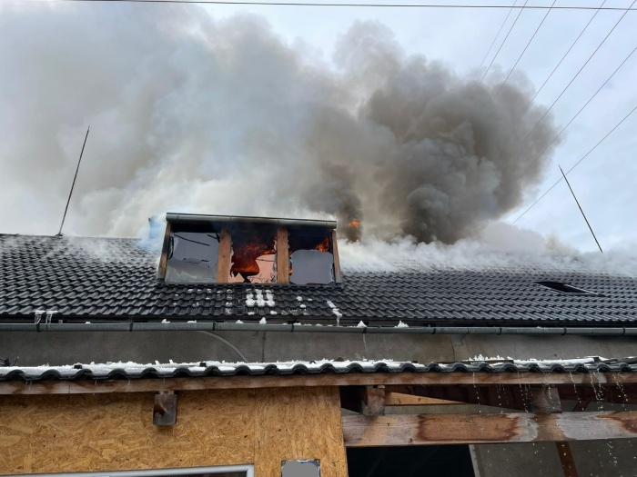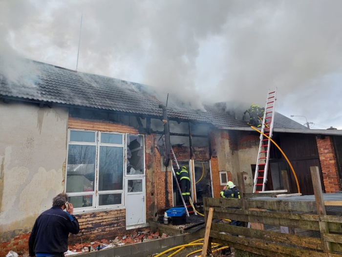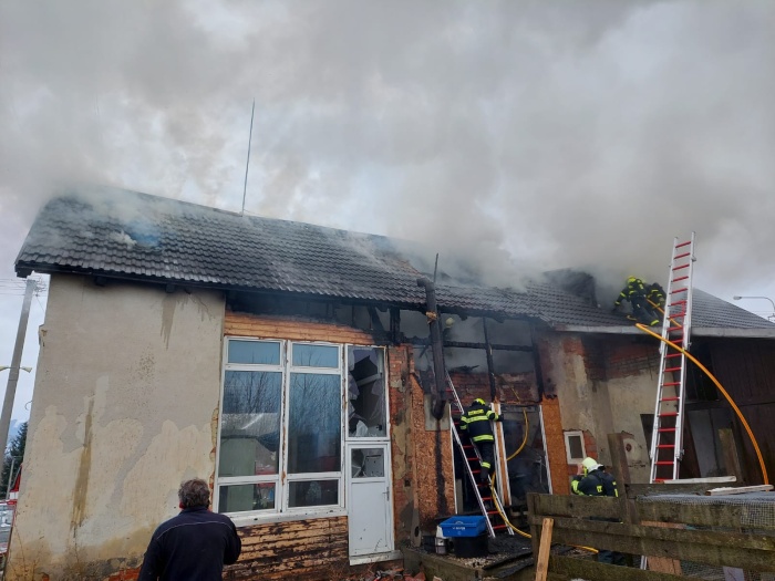 Šest jednotek hasičů zasahovalo ve středu 9.3.2022 dopoledne ve Frenštátu pod Radhoštěm (okres Nový Jičín) u požáru sedlové střechy...