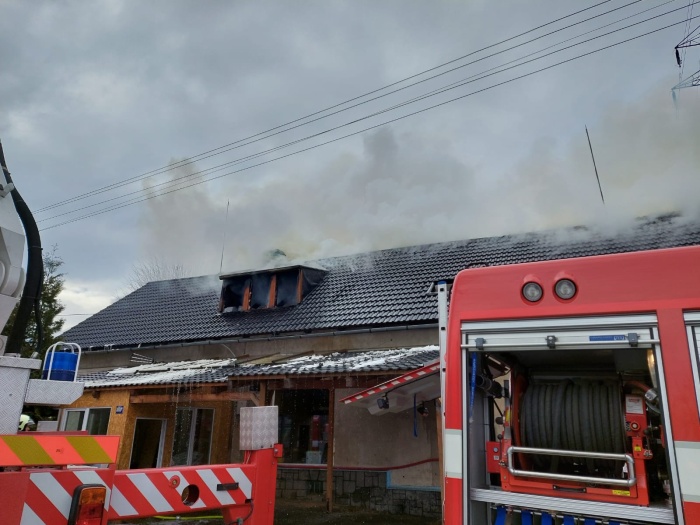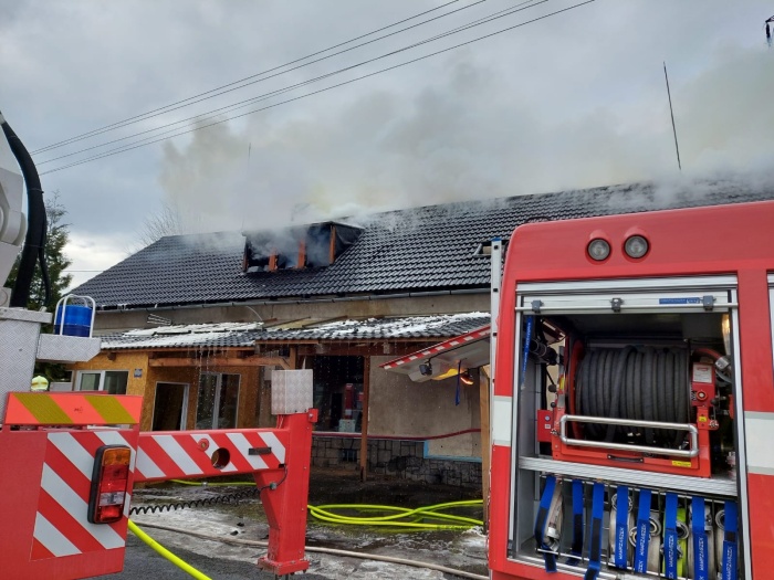 Požár střechy, půdy a podkroví ve Frenštátu pod Radhoštěm s 9 evakuovanými