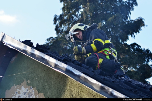 Požár střechy domku v Klimkovicích, hasiči uchránili majetek za půl milionu