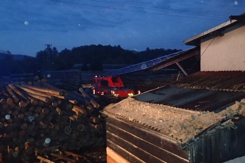 Požár střechy kotelny na pile v obci Bystřice na Frýdecko-Místecku