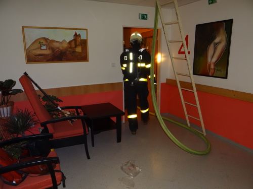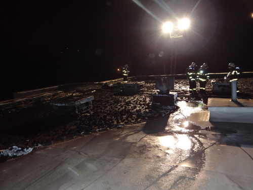 Hasiči dostali oheň pod kontrolu za necelou půlhodinu, a to hašením jak ze střechy, tak dvěma automobilovými žebříky (AŽ 55 MB Arocs a AŽ 30 Camiva). Oheň tak stačil zničit pouze střešní krytinu a polystyren, hlouběji do střešní a stropní konstrukce se nedostal.