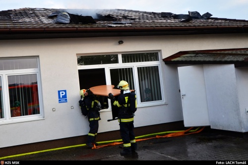Šest jednotek profesionálních a dobrovolných hasičů zasahovalo ve středu 1.5.2019 večer v Ostravě-Hrabové, kde hořela střecha firemního objektu. Požár se obešel bez zranění, předběžná škoda byla odhadnuta na 200 tisíc korun. Hasiči ale svým rychlým zásahem uchránili před ohněm celé přízemí a majetek nejméně za jeden milion korun, když mj. stačili vynést z kanceláří velké kopírky, počítače, chladničky a nábytek za desetitisíce korun. Příčina vzniku požáru je v šetření.
