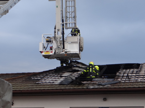 Při příjezdu hasičů hořela střecha vydatným plamenem a hustý kouř „obtěžoval“ nedalekou kruhovou křižovatku pod dálničním mostem na Frýdek-Místek. Hasiči dostali oheň pod kontrolu za necelou hodinu, dohašování s rozebíráním i rozřezáváním střešní krytiny a dřevěných trámů jim zabralo další hodinu a půl, když využívali výškovou techniku (automobilová plošina AP 30 MB Econic ze stanice Ostrava-Jih) i termokameru. Nakonec provizorně přikryli poškozenou střechu plachtou.
