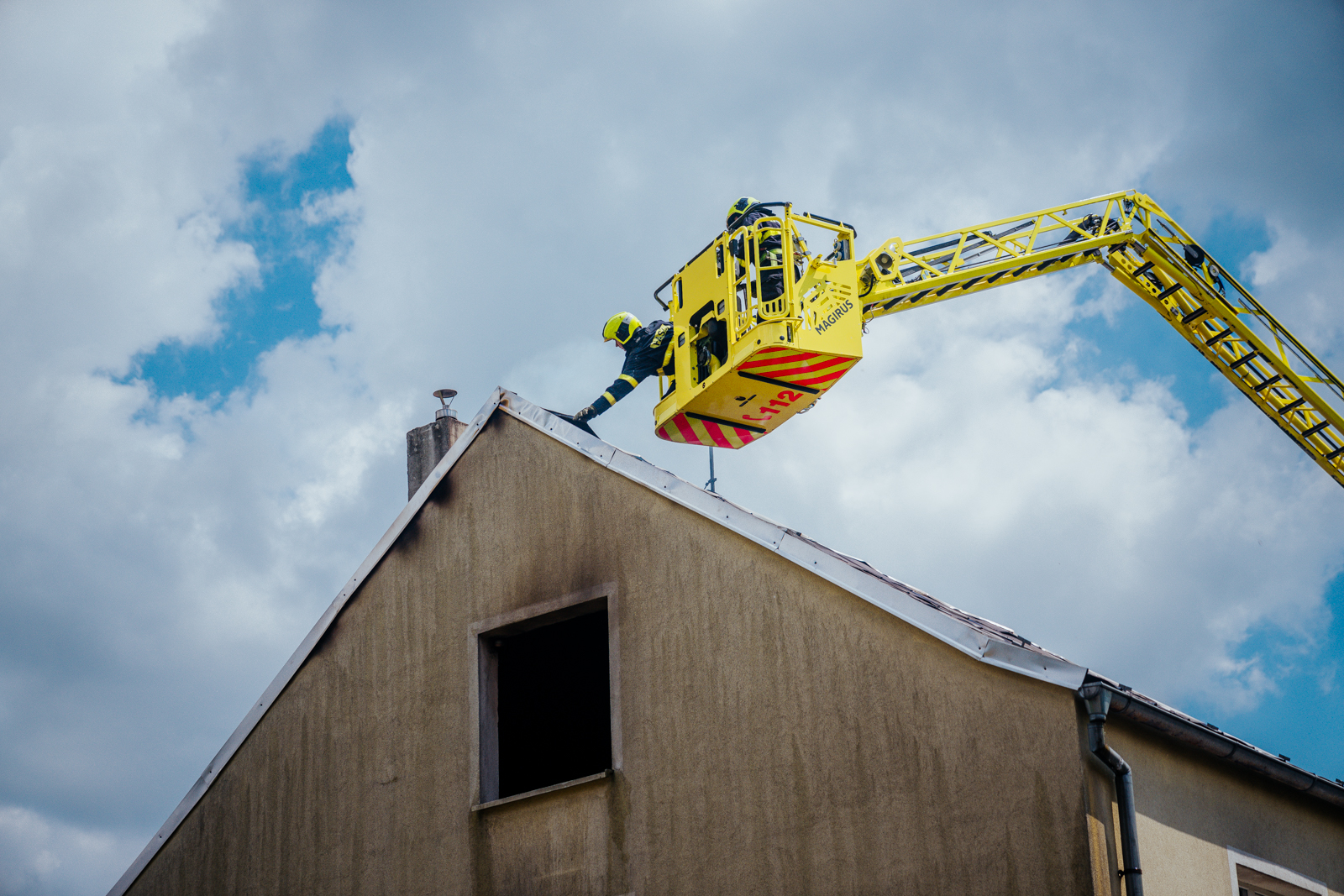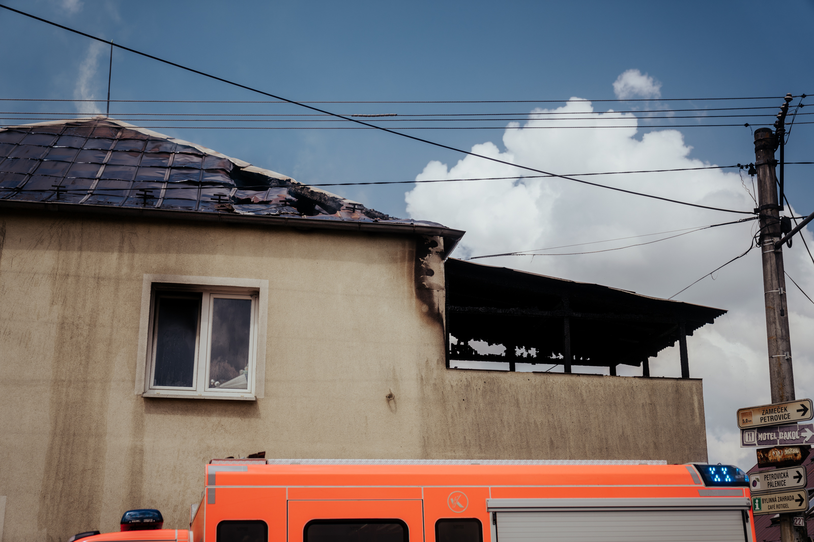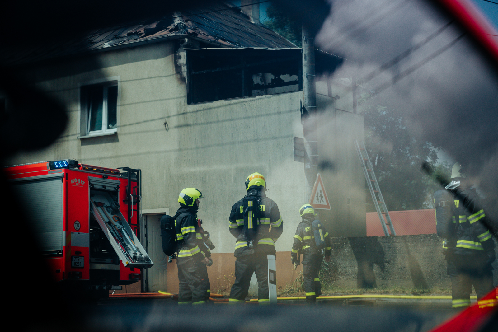 Požár dostali hasiči pod kontrolu za necelou půlhodinu, z automobilového žebříku následně rozebírali střešní konstrukci.