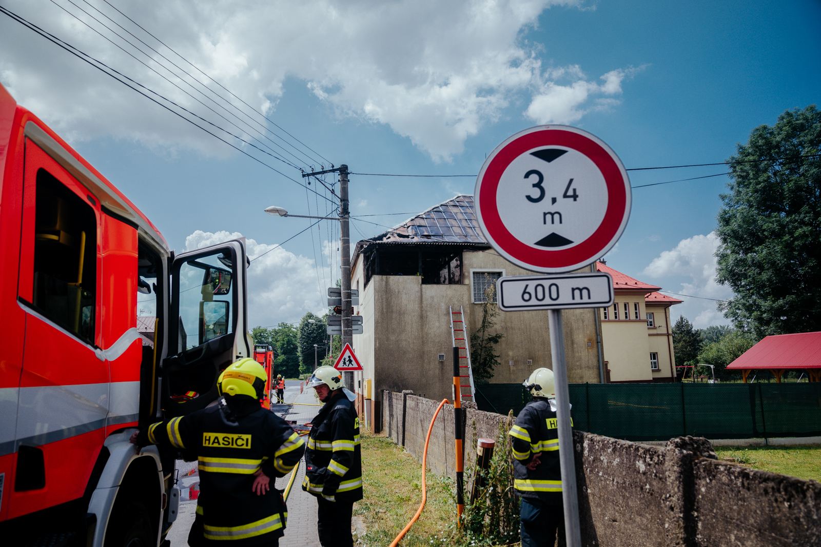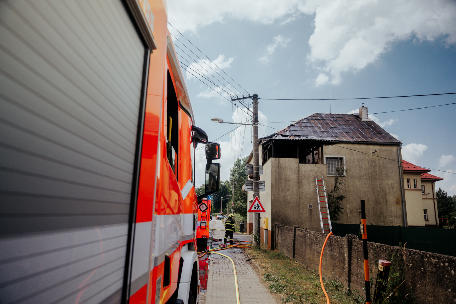 Čtyři jednotky hasičů zasahovaly v neděli 25. června 2023 dopoledne u požáru v podkroví rodinného domu v Závadě, místní části Petrovic u Karviné.