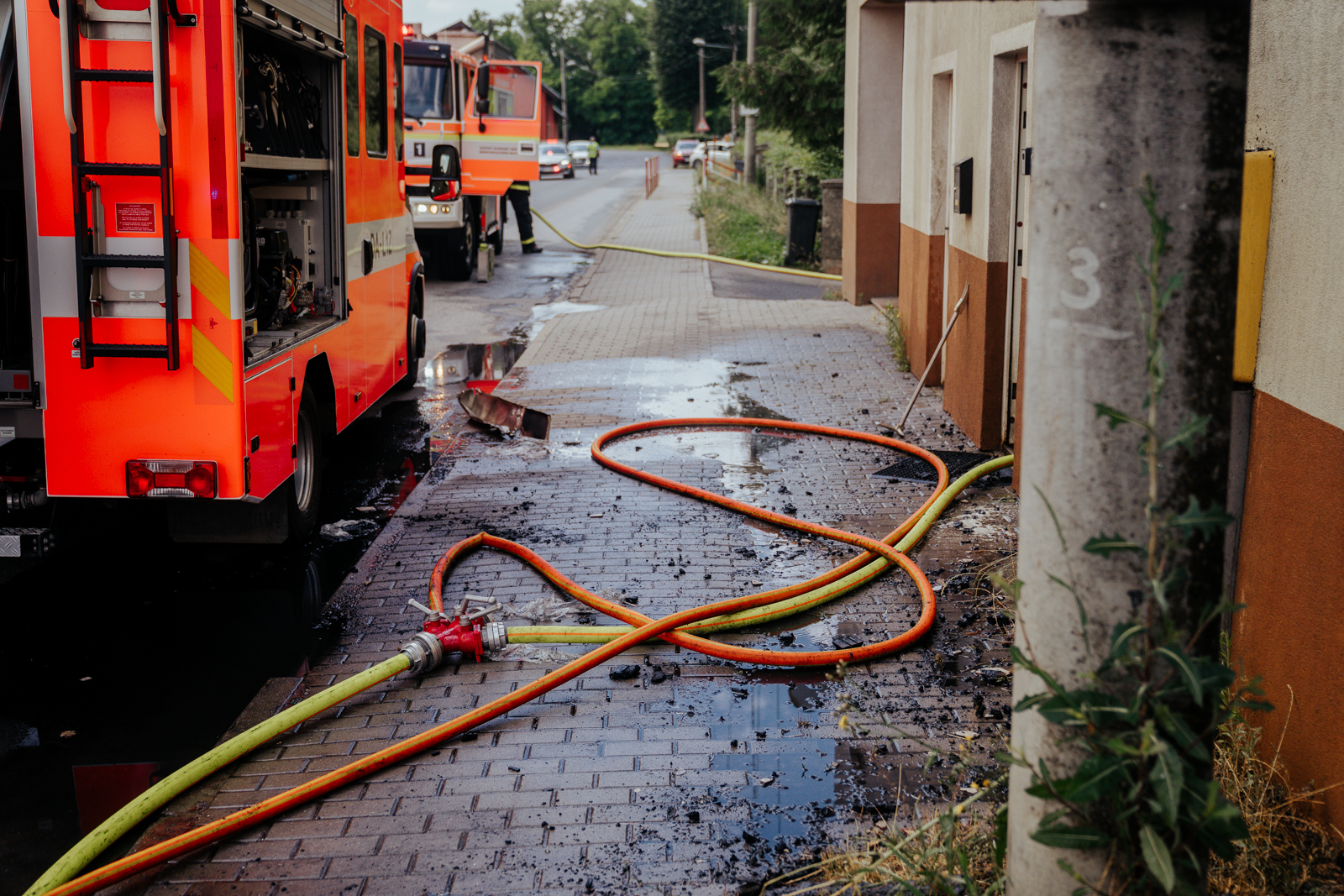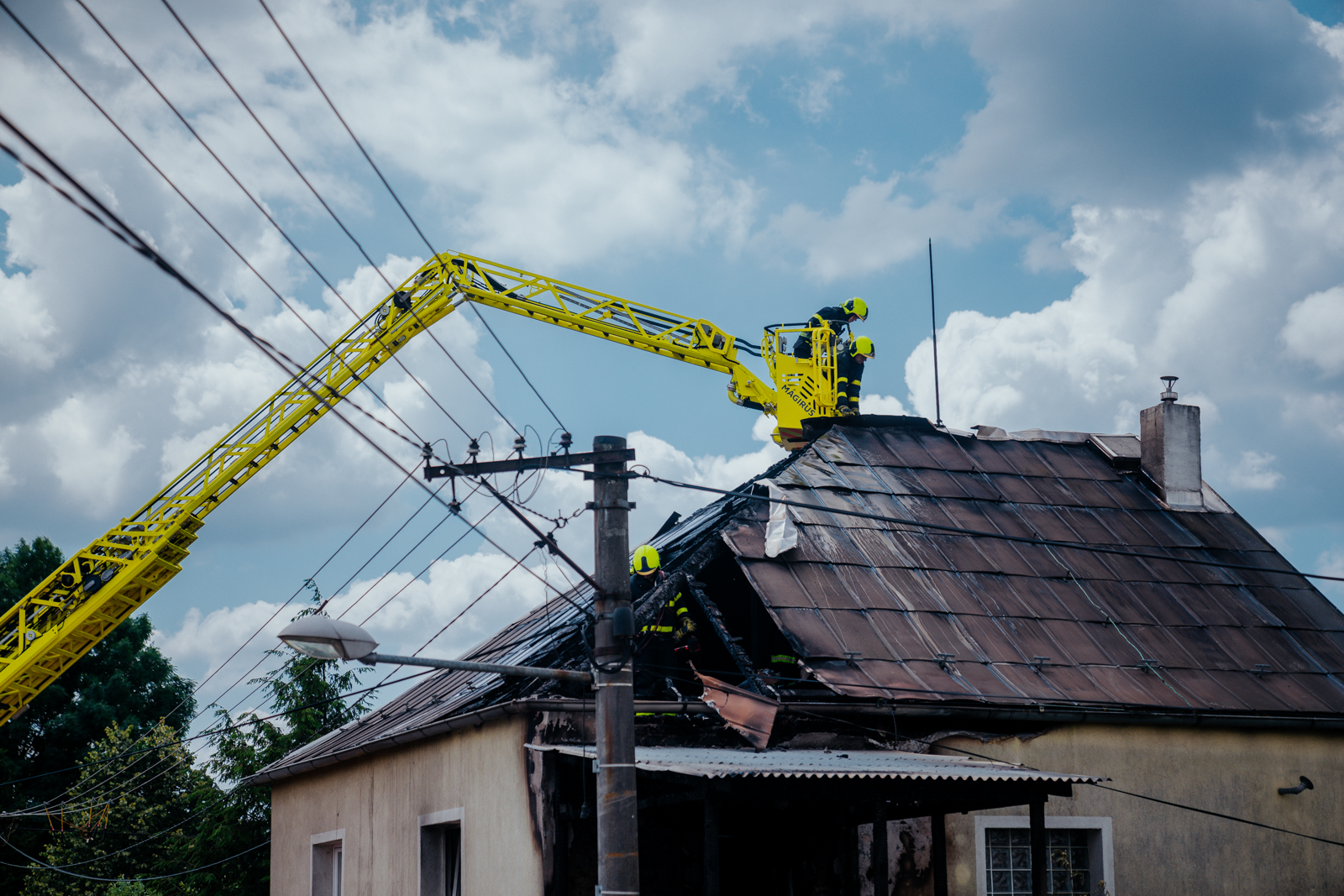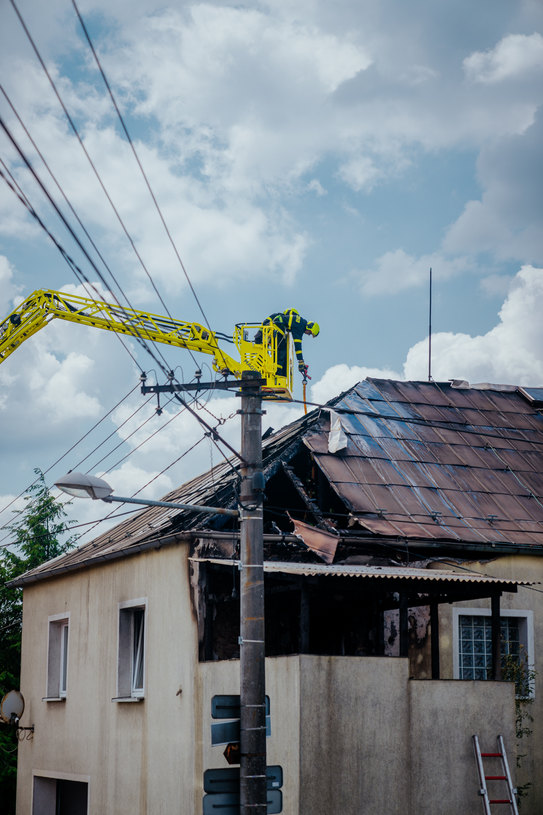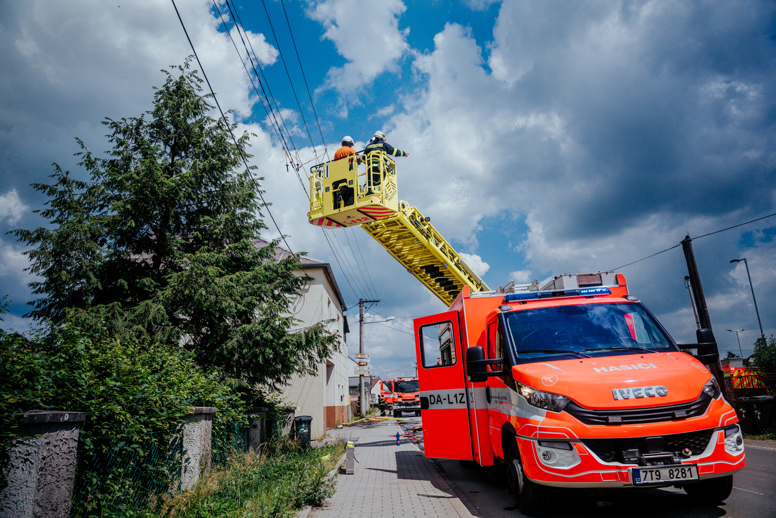 Po příjezdu prvních jednotek na místo události již byla obyvatelka domu venku mimo nebezpečí, velitel zásahu zajistil odpojení objektu od přívodu elektrické energie a povolal na místo výškovou techniku.