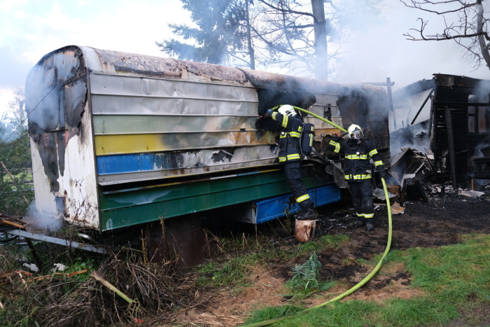 Dvě jednotky hasičů zasahovaly v Suchdolu nad Odrou (okres Nový Jičín) u požáru maringotky se včelínem a navazující unimobuňky se...