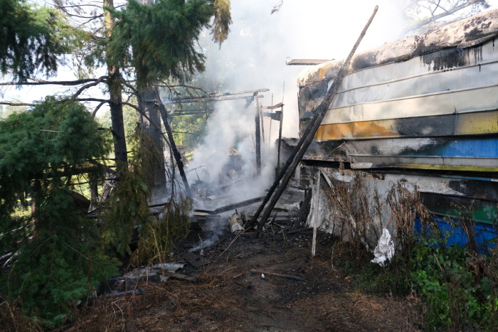 Hasiči dostali oheň pod kontrolu za 22 minut, když se jim podařilo uchránit před ohněm starší nakladač a vzrostlý strom. Dohašování s rozebíráním konstrukcí jim zabralo necelou hodinu.