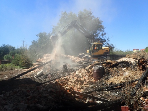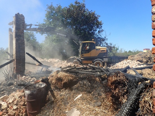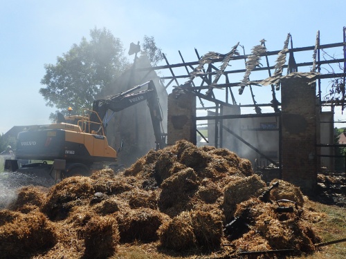 Starosta obce zařídil bagr, který vyvážel hořící a doutnající slámu a hasiči ji venku prolévali. Po dohodě s majiteli bylo rozhodnuto o demolici stodoly, a to stejným bagrem.