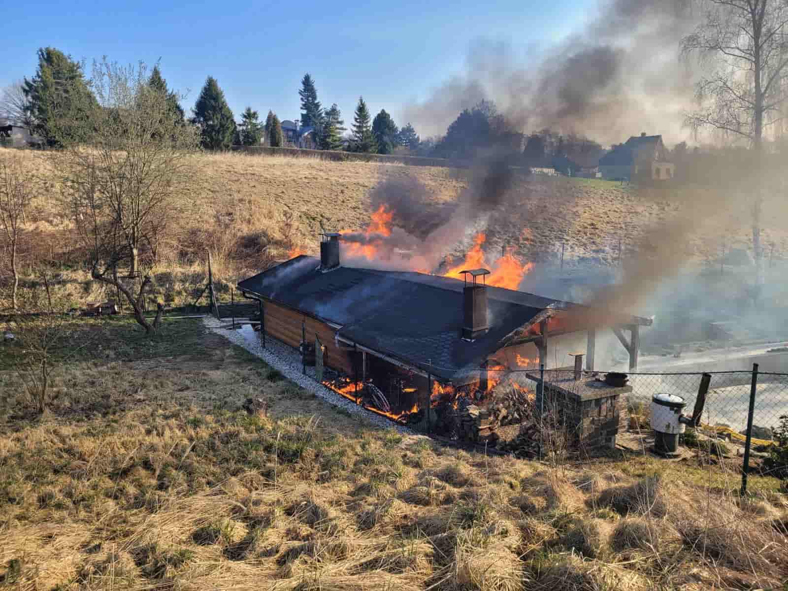 V neděli ráno vyjížděly profesionální a dobrovolné jednotky hasičů k požáru zahradního domku, který byl již při jejich příjezdu plně zasažen plameny. Zásah si vyžádal rychlé nasazení dvou vodních proudů a rozebrání části konstrukce.