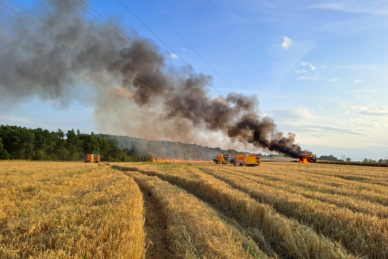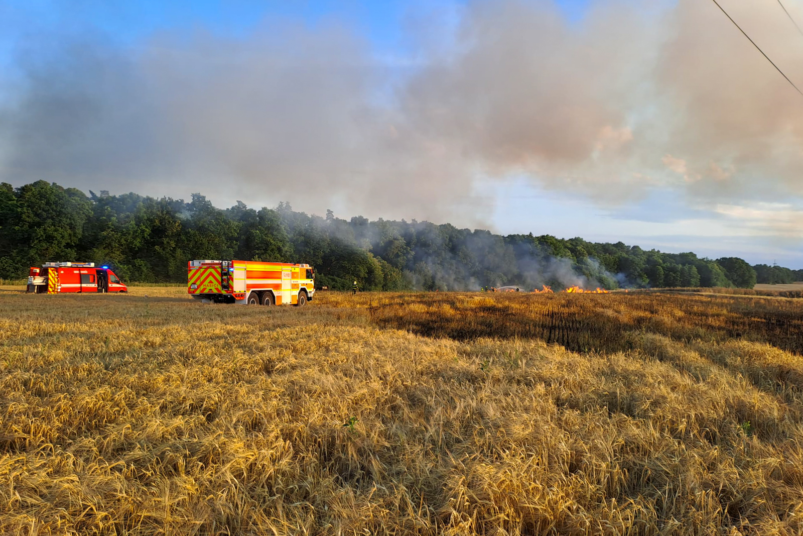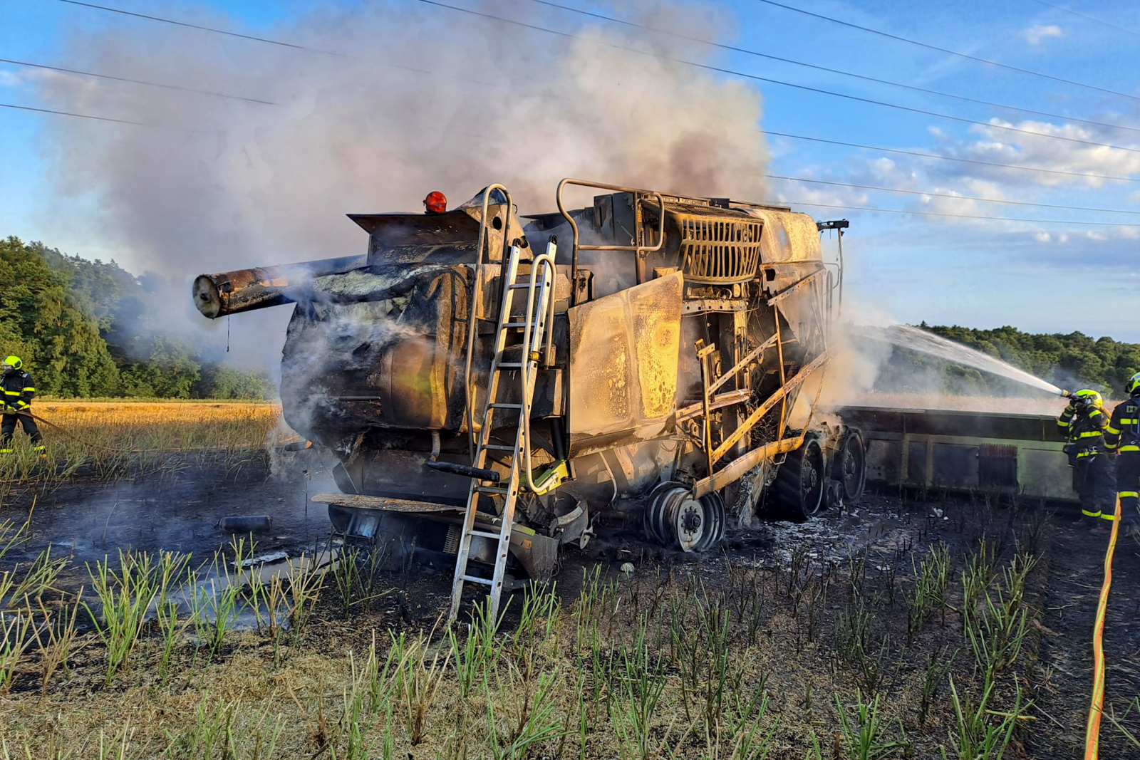 Požár vznikl v důsledku technické závady při provozu kombajnu, plameny kromě stroje zasáhly i strniště a ještě neposečenou část pole na ploše přibližně 100 × 200 metrů.