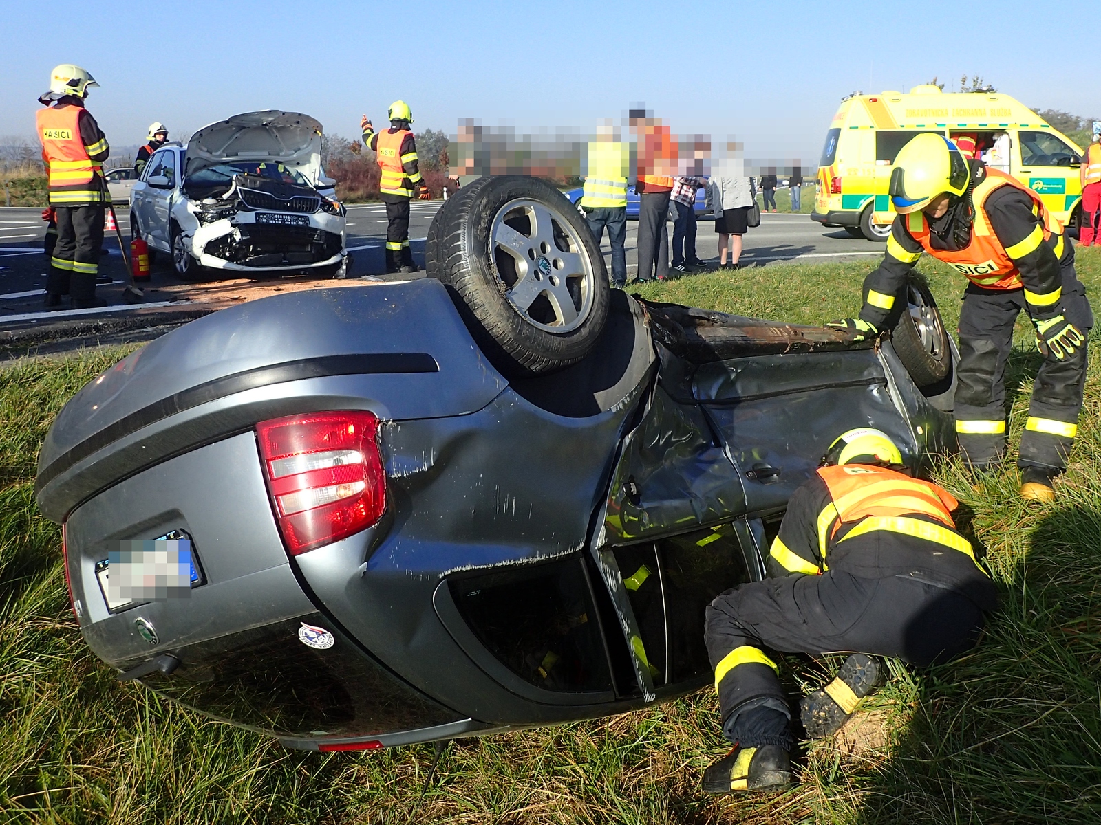 Při nehodě bylo zraněno pět osob, jeden z automobilů skončil na střeše