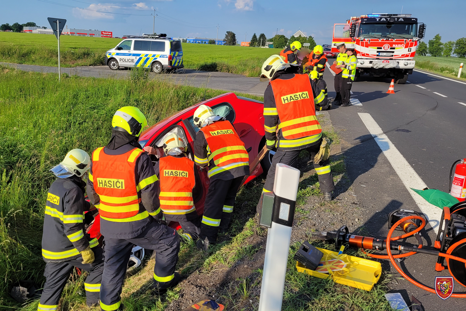 Po příjezdu na místo události bylo nutné hydraulickými nástroji odstranit dveře jednoho z havarovaných vozidel, aby mohla vystoupit jeho řidička.