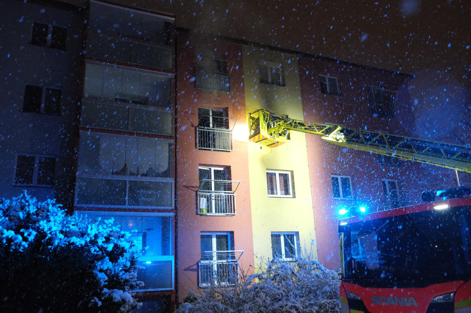 Hasiči již při příjezdu k místu události viděli nejen plameny šlehající z jednoho z oken, ale také ženu volající o pomoc v okně druhém. Hasiči tak za pomoci tří vodních proudů, které byly vedeny jak pozemní cestou, tak z výškové techniky, začali boj s požárem, zároveň také započali záchranné práce, kdy rovněž za pomoci výškové techniky zachránili z hořícího bytu ženu. Během zásahu probíhala také evakuace ostatních obyvatel domu, ta byla prováděna ze strany PČR, celkem bylo evakuováno 16 osob, pro ty byl na místě připraven evakuační autobus, který zajišťoval hlavně tepelný komfort. Požár se podařilo lokalizovat během hodiny, hasiči pro násilný vstup do bytu museli použit hydraulické nástroje. Bohužel po vstupu do samotného bytu nalezli hasiči muže bez známek života.