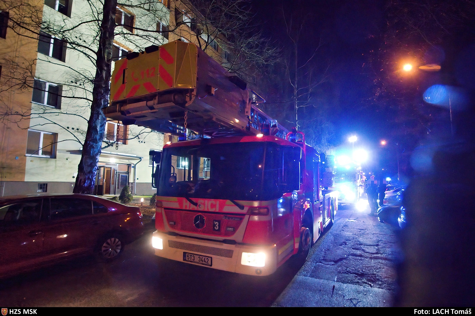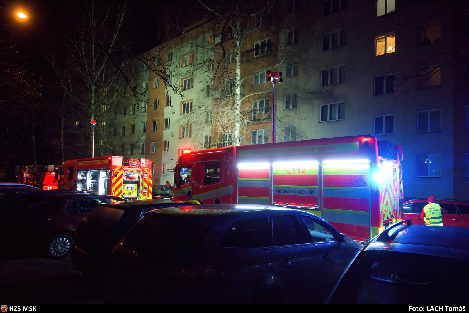 Tři jednotky hasičů likvidovaly ve středu 19. ledna 2022 v podvečer požár bytu ve třetím nadzemním podlaží bytového domu v Alžírské ulici v Ostravě-Porubě.