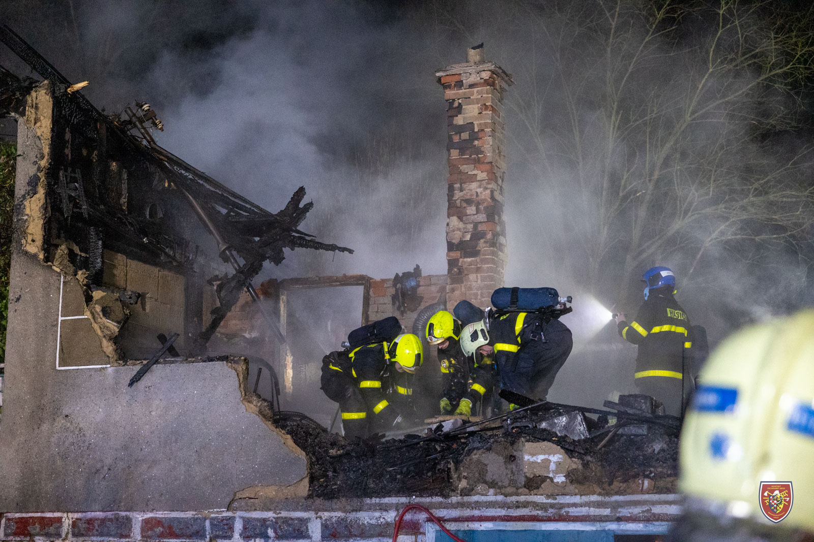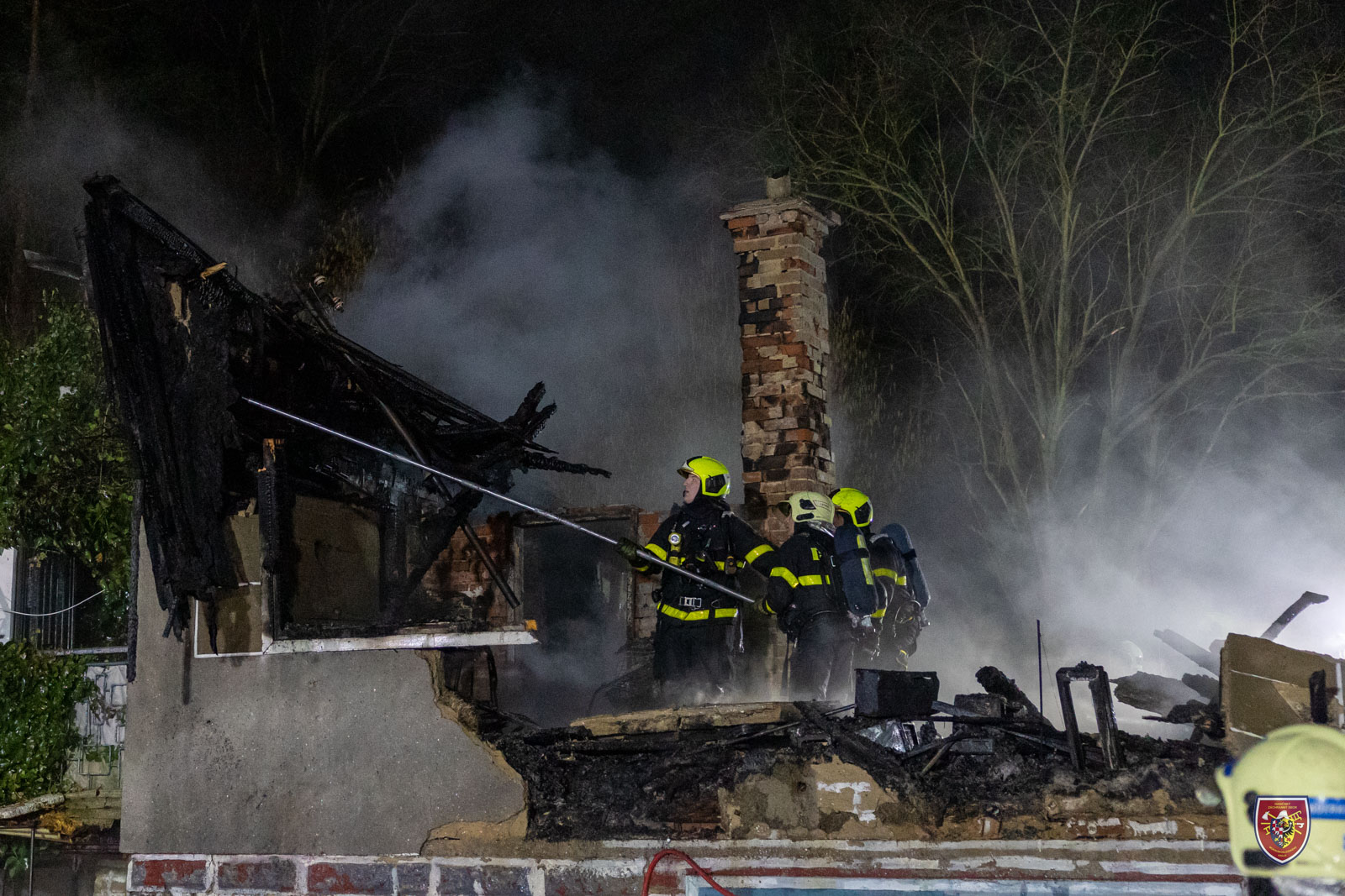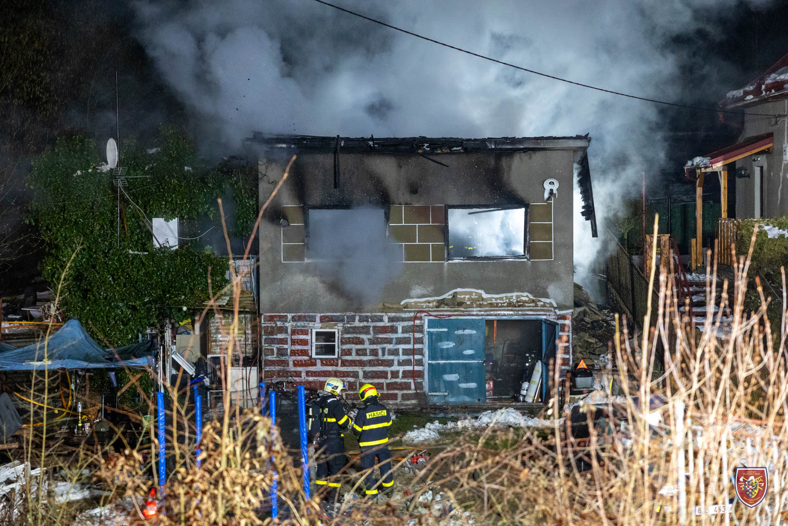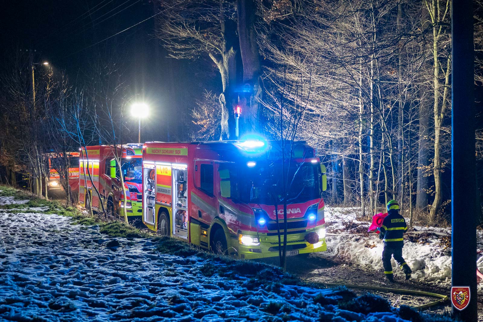 Hasiči ze čtyř jednotek likvidovali v úterý 24. ledna 2023 večer požár chaty v Dolní Lhotě, zemřeli při něm dva lidé.