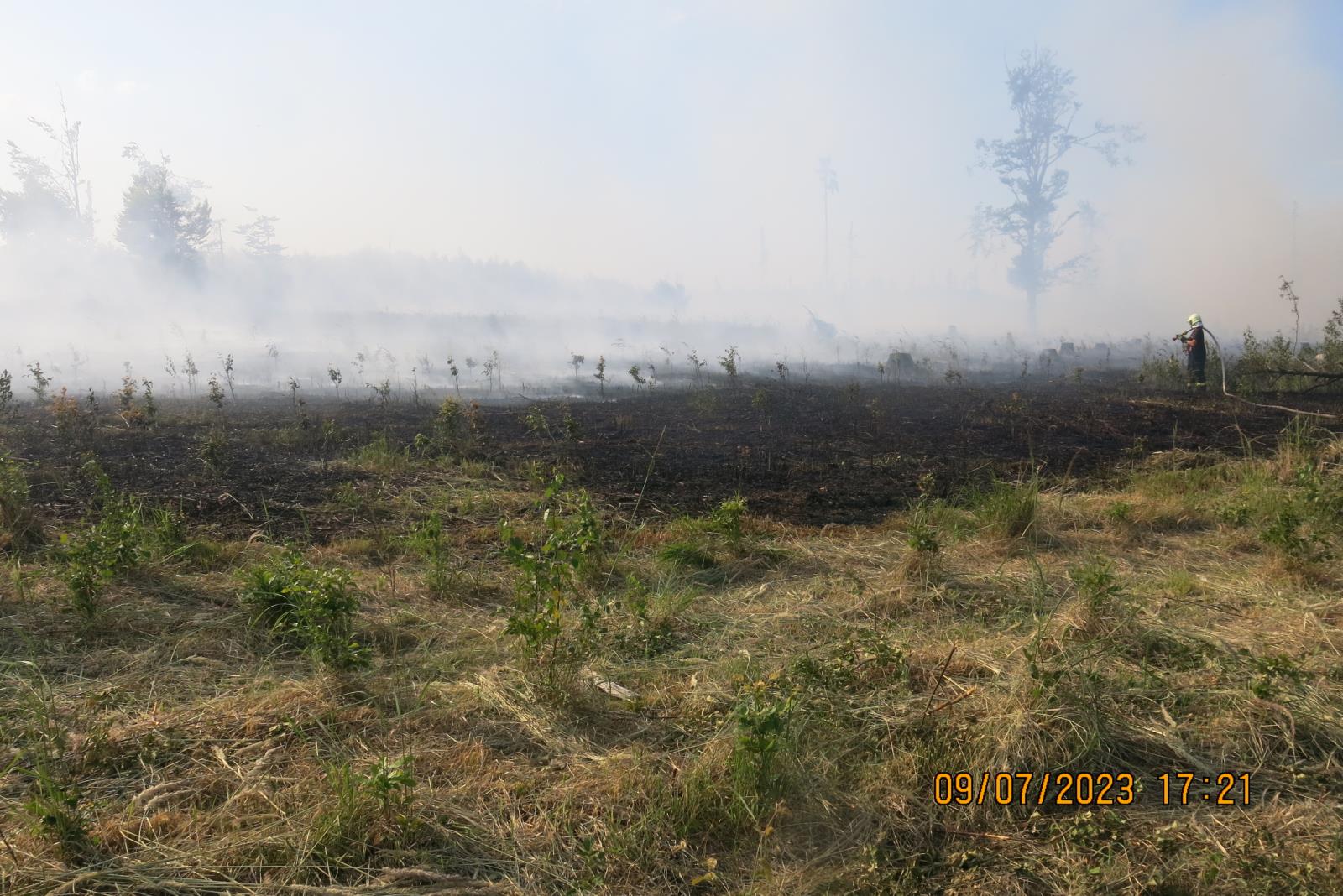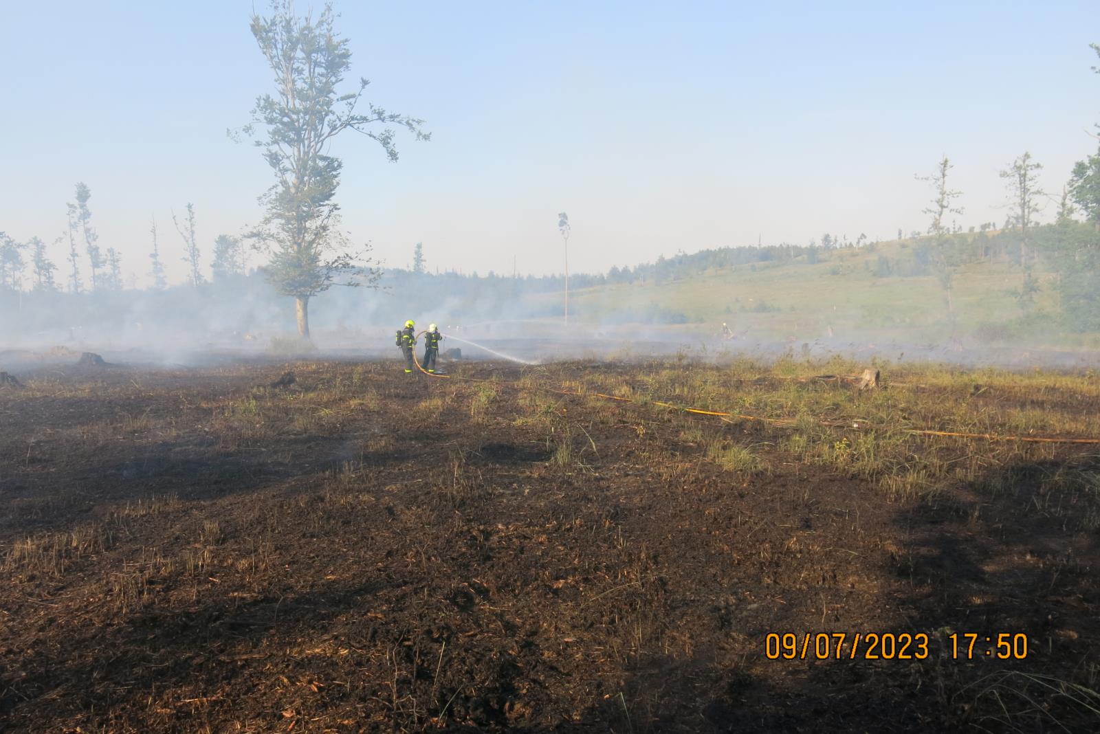 Požár o rozloze 200x250 metrů se nakonec podařilo v nesnadno přístupném terénu dostat pod kontrolu po dvou hodinách boje. Po uhašení požáru zůstala na místě na dohlídku, až do rána jednotka dobrovolných hasičů z Horního Benešova, která ráno předala místo majiteli lesu, který během zásahu zajišťoval pro hasiče i pitný režim.