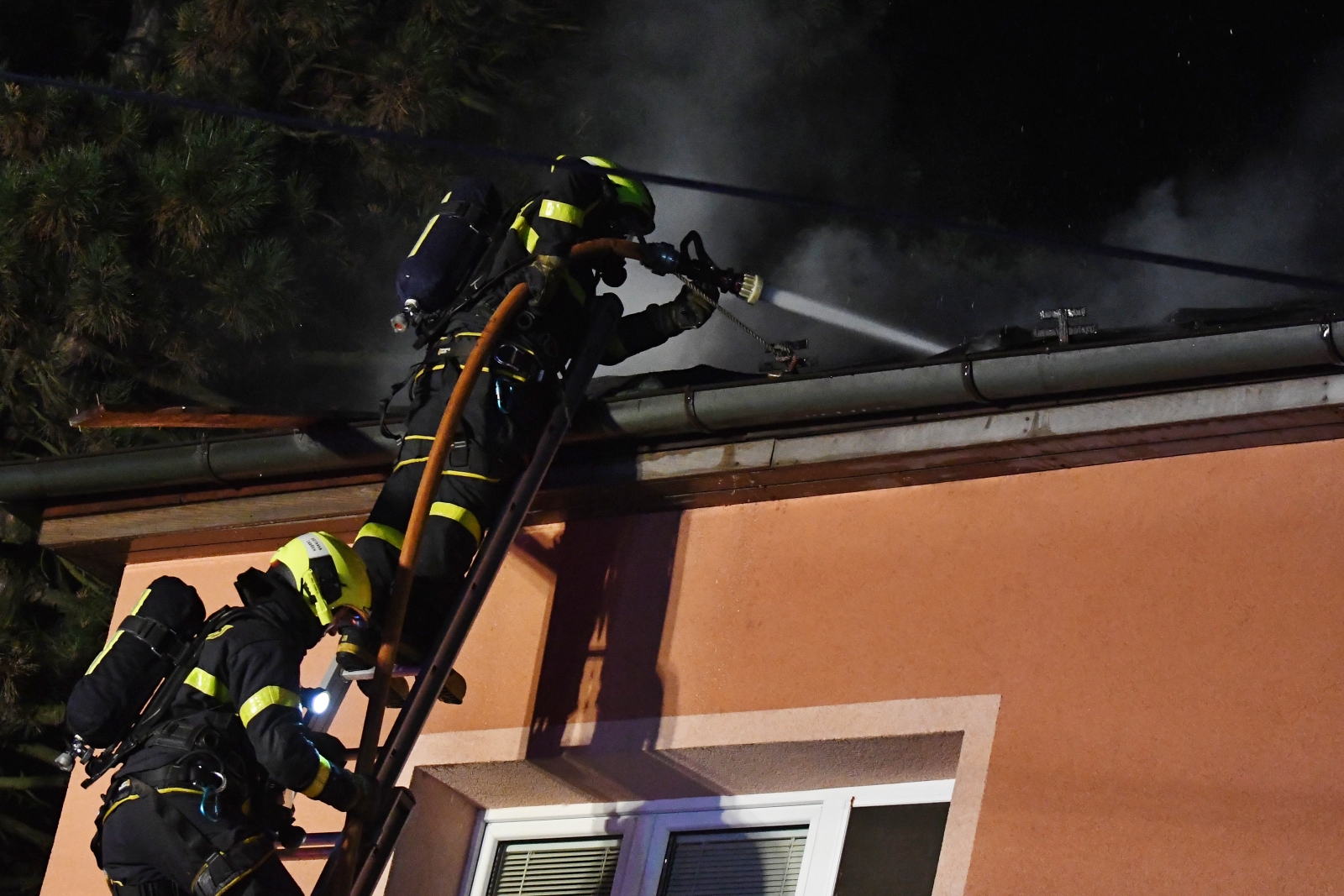Jednotky, již v době příjezdu na místo události, viděly hustý dým stoupající ze střechy domu. Pro boj s ohněm nasadili hasiči vodní proudy jak z vnitřní, tak z vnější části domu, přičemž z vnější části využívali výškovou techniku. Požár se podařilo lokalizovat během dvou hodin, další čtyři hodiny pak zabrala jeho likvidace. Při požáru bylo nutné částečně rozebrat střešní konstrukci pro nutnost odvodu tepla. Po likvidaci požáru, zůstala na dohled, až do ranních hodin, jednotka dobrovolných hasičů z Vratimova.