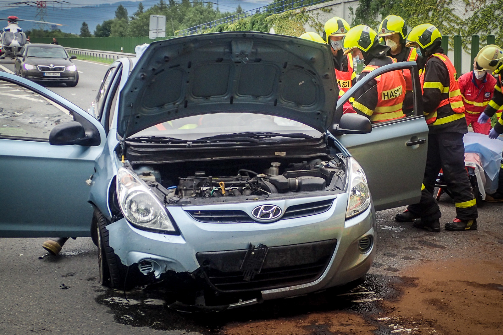 Při střetu dvou osobních vozidel a motocyklisty na dálnici D56 u Dobré byla zraněna jedna z řidiček, motocyklista svým zraněním podlehl