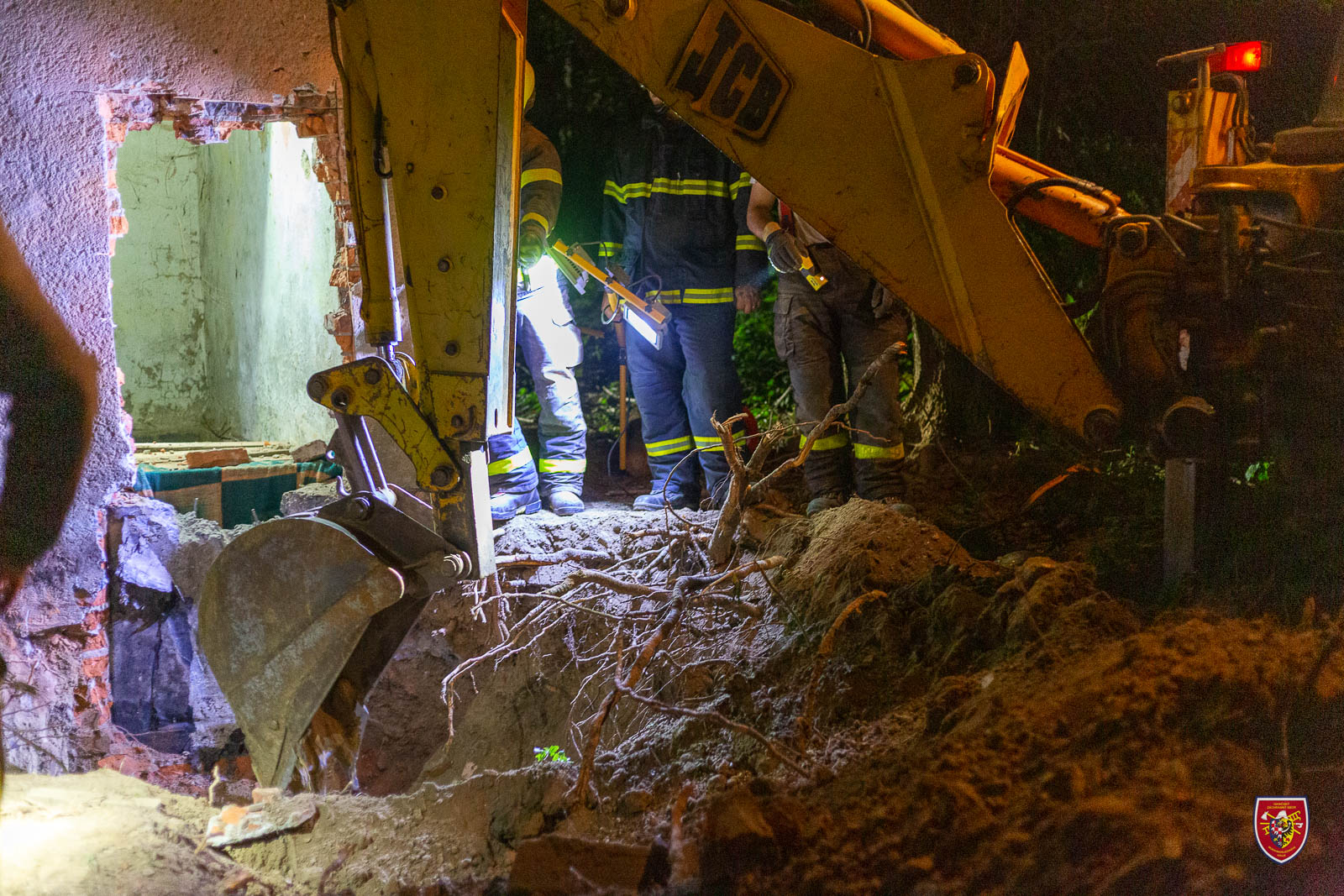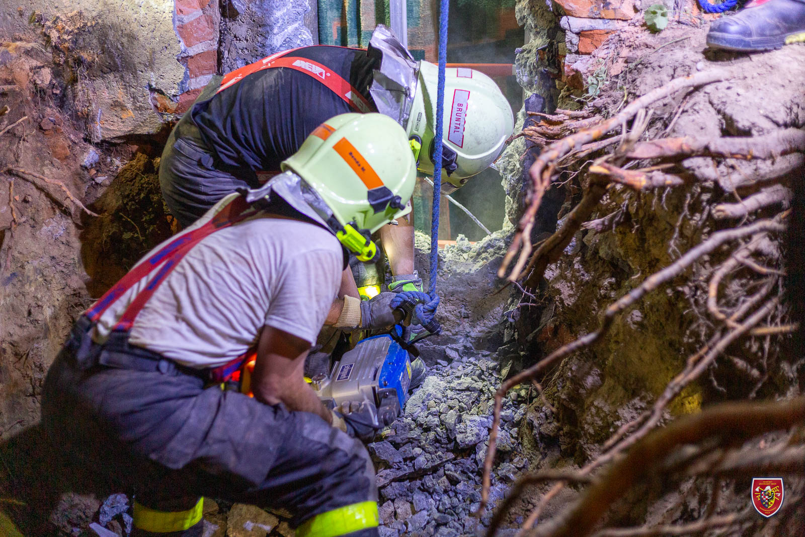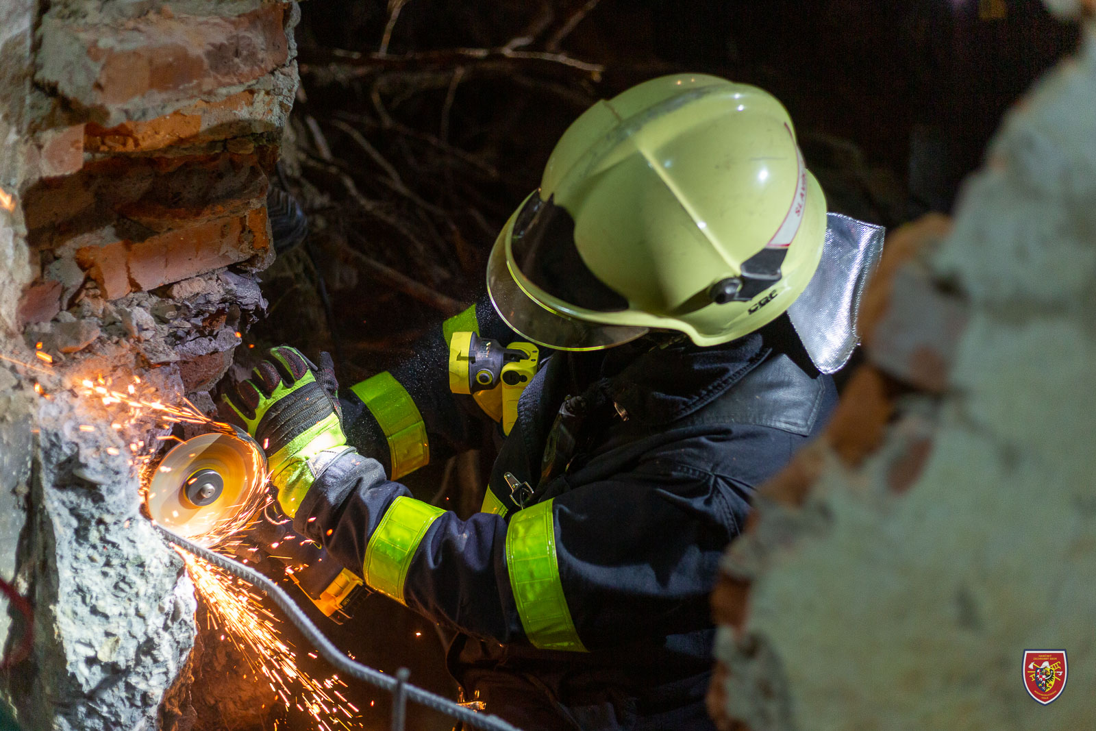 Jako nejvhodnější a prakticky jediné možné se ukázalo odkopání základů budovy a vytvoření díry z vnější strany. Před zahájením prací jednotky motorovou pilou odstranily několik stromů pro vytvoření pracovního prostoru. S odkopáním zeminy pod základy pomohl přivolaný bagr, díru do zdi pak udělali hasiči rozbrušovací pilou a bouracím kladivem.