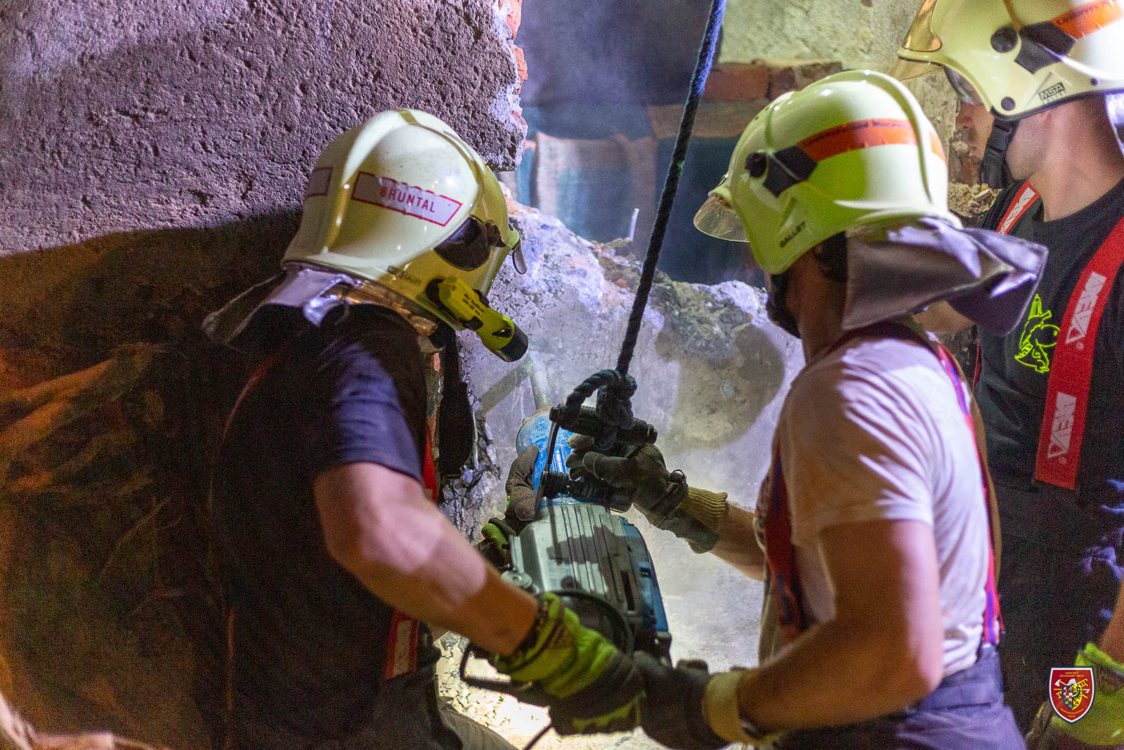 Náročná práce trvala několik hodin, kromě průběžného odebírání zdiva bylo rovněž nutné odřezávat armatury v demolovaném betonu a klidnit obě zvířata.
