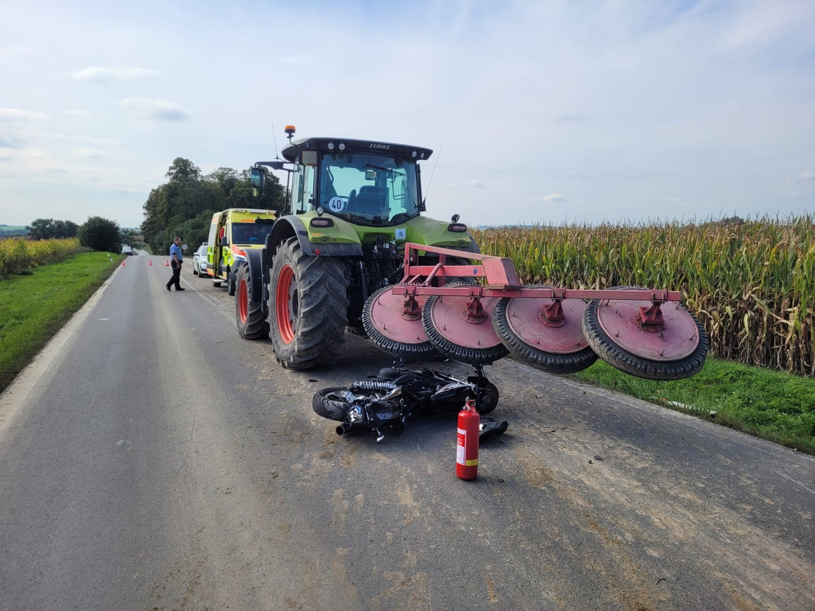 V sobotu 24.9.2022 došlo krátce po poledni ke střetu traktoru s motocyklem. Pro motorkáře přiletěl vrtulník zdravotnické záchranné služby. Hasiči poskytli motorkáři předlékařskou pomoc, zajistili místo pro přistání vrtulníku a následně zasahovali u nabouraného motocyklu. Silnice byla po dobu zásahu uzavřená.