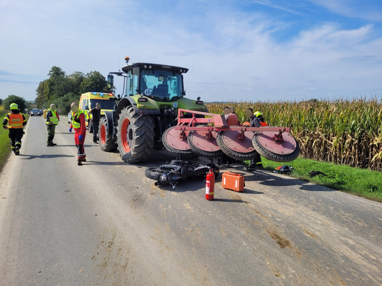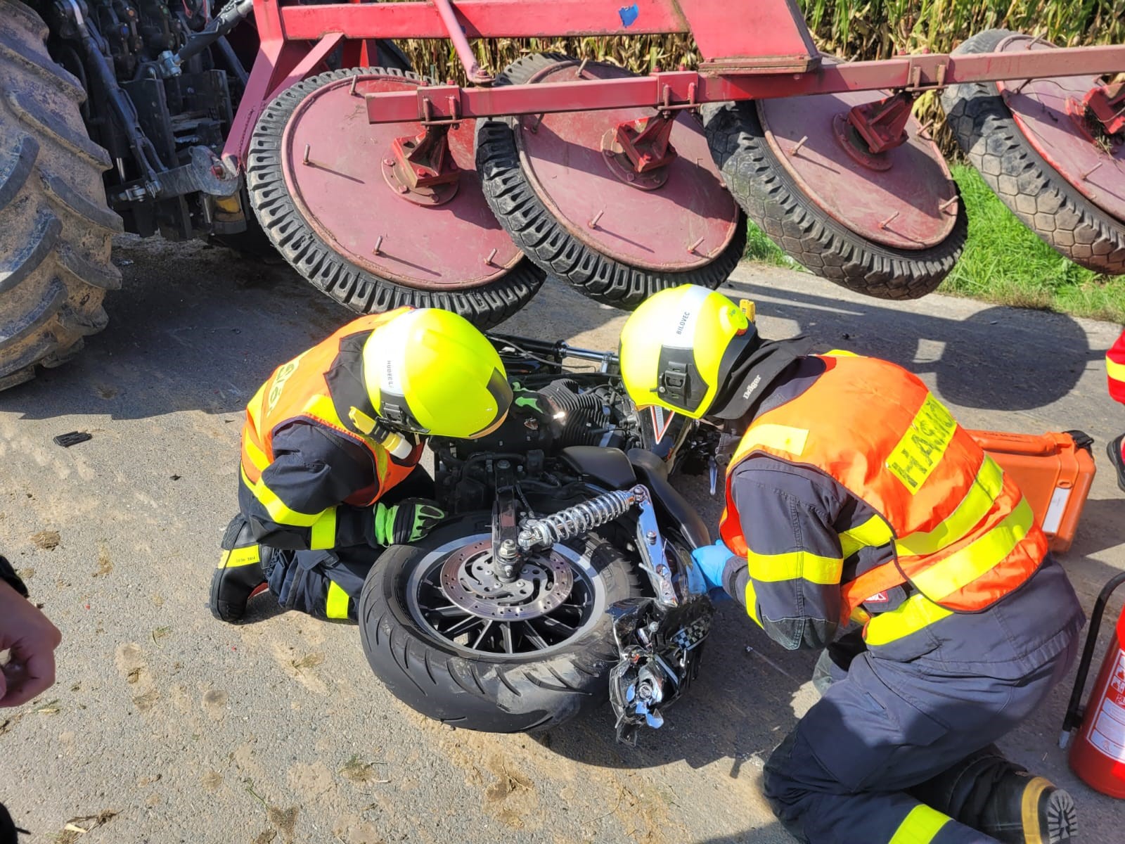 Po příjezdu na místo hasiči zajistili jak traktor, tak i motocykl proti požáru.  Hasiči také poskytovali předlékařskou pomoc zraněnému motorkáři a následně po příjezdu posádky zdravotnické záchranné služby jim asistovali při ošetřování. Pro vrtulník hasiči zajistili také místo pro přistání. Po prvotním ošetření byl motorkář transportován do nemocničního zařízení. Řidič traktoru nebyl zraněn. Během nehody nedošlo k úniku provozních kapalin.