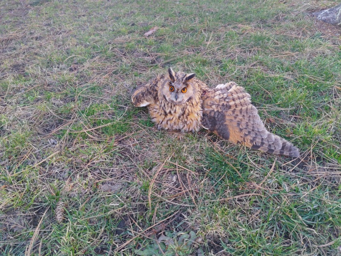 Přišel blíž a zjistil, že jde o mladého výra velkého (bubo bubo), a bylo zjevné, že má zlomené levé křídlo. Hasič ho překryl dekou a odnesl opatrně mimo komunikaci, aby ho někdo nepřejel. Do služebního auta jej totiž nemohl naložit – z hygienických důvodů ve vztahu k vakcínám. „Zásah zastavil čtyři vozidla, která asi dvě minuty počkala, než jsem výra dal na pole do trávy, aby ho nic nepřejelo. Díky služebním majákům nepřejel nikdo ani mě,“ podotkl hasič.