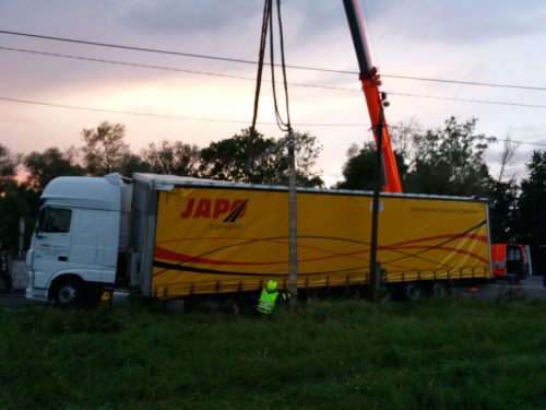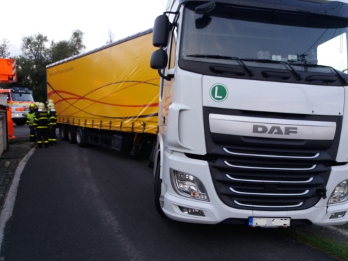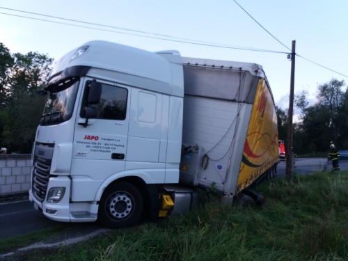 O den dříve – tedy v pondělí 18.9.2017 v podvečer – vyjely dvě jednotky HZS MSK (ze stanic Bohumín a Ostrava-Zábřeh) do Oderské ulice ve Starém Bohumíně (okres Karviná) vyprošťovat kamion DAF, naložený kovovým materiálem, který skončil zadní částí návěsu v příkopu, a hrozilo proražení jeho palivové nádrže. Nehoda se obešla bez zranění.