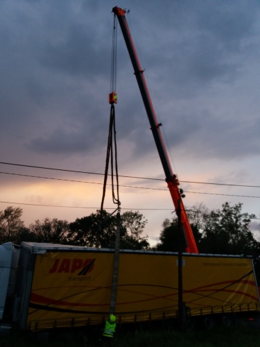 Kamion hasiči vytáhli zpět na silnici pomocí vyprošťovacího speciálu Mercedes Actros Bizon a jeřábu Demag/Terex ze stanice HZS MSK v Ostravě-Zábřehu.