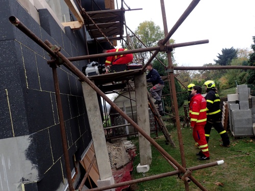 Profesionální hasiči zachraňovali zesláblého dělníka z lešení na Opavsku