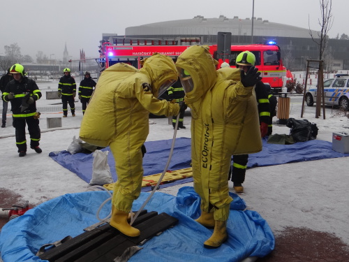 Sedm jednotek profesionálních (HZS MSK) a dobrovolných hasičů se zapojilo tento týden (v úterý 7.2.2017) do cvičení IZS v nově otevřené tréninkové hokejové hale v Třinci (okres Frýdek-Místek) vedle hlavní haly Werk Arena, zaměřeného na odstraňování následků úniku amoniaku ze strojovny chlazení. Šlo o první cvičení v této moderní hale, která byla otevřena na konci loňského roku.
