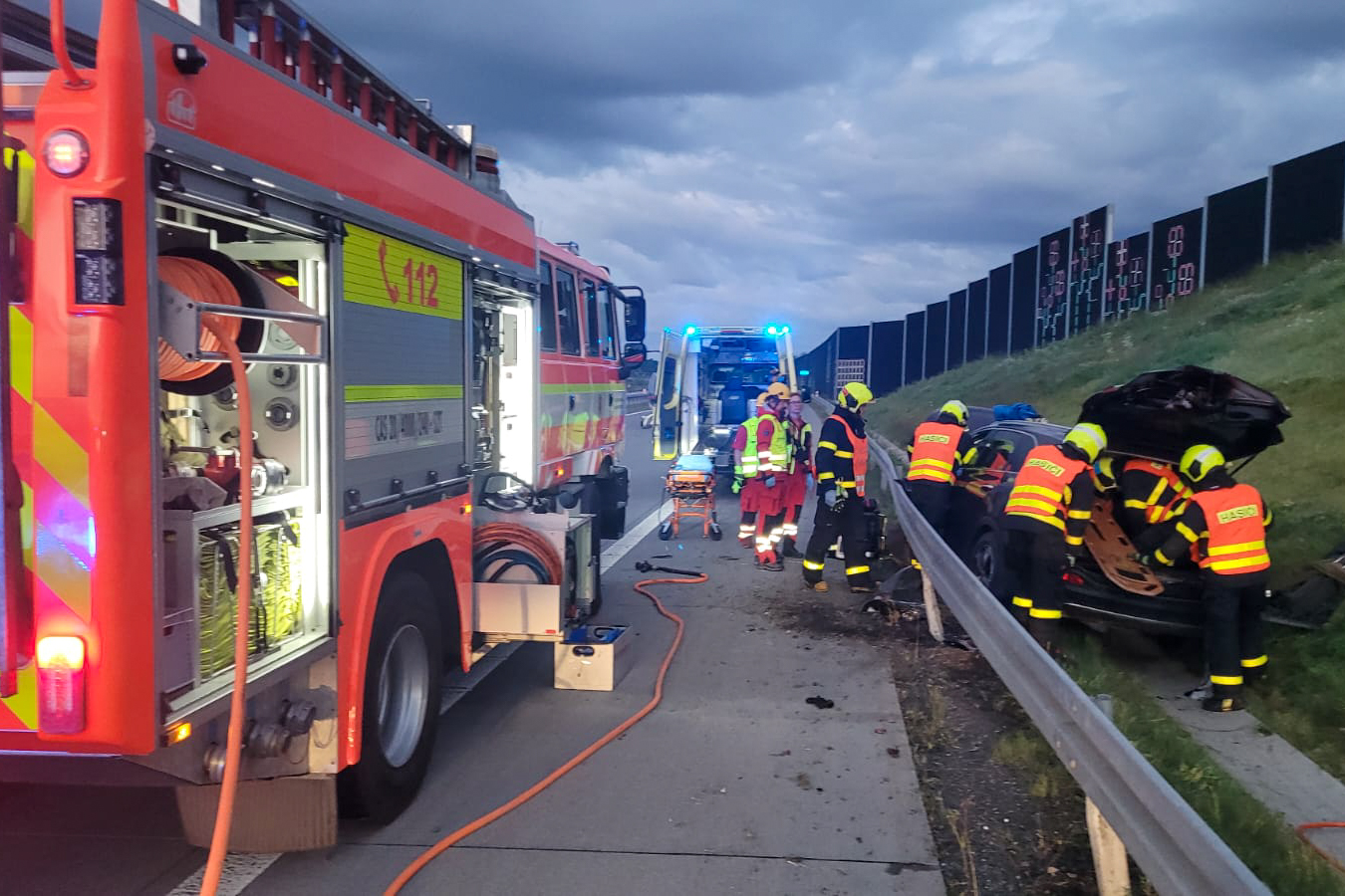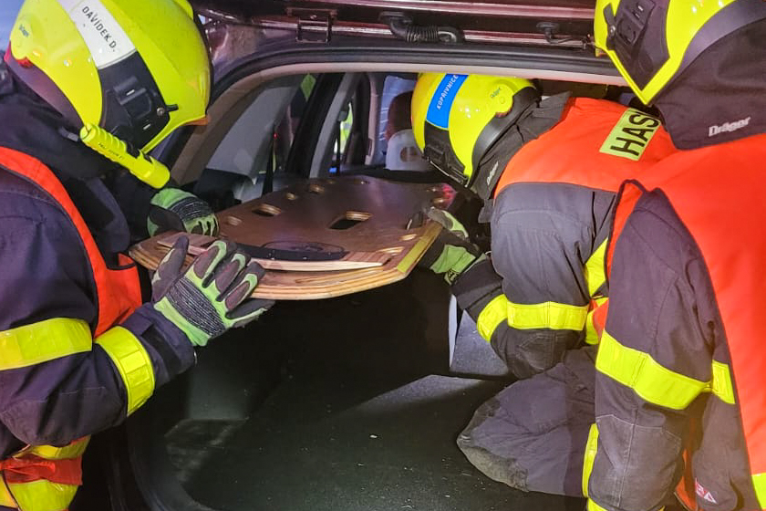Ti po příjezdu k dopravní nehodě zjistili, že ve vozidle, které narazilo do svodidel, zůstal řidič a nemohl ven. Pro vyproštění násilně otevřeli páté dveře, sklopili sedadla a muže opatrně vytáhli na páteřové desce. Postarali se o něj zdravotníci.