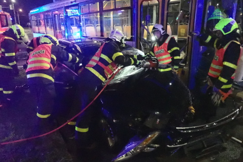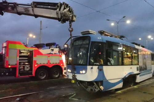 Profesionální hasiči z Ostravy-Zábřehu (HZS MSK) zasahovali v úterý 25.9.2018 brzy ráno v Ostravě-Vítkovicích u nehody tramvaje číslo 11 a osobního automobilu Ford Mondeo, a to v křižovatce čtyřproudé Rudné a Závodní ulice. Z mondea museli pomocí hydraulických nástrojů vyprostit zraněného řidiče, vyprošťovací speciál Bizon pak naložil auto na „odtahovku“ a ještě nakolejil tramvaj. Její řidička vyvázla bez zranění.