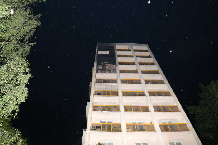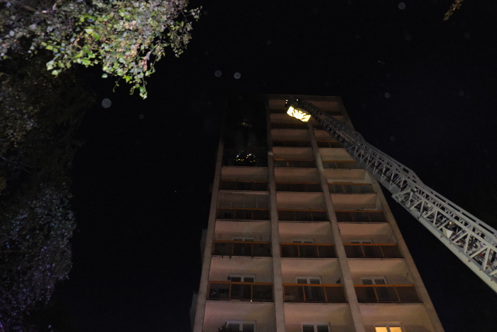 Hořelo v jednom pokoji v bytě v osmém patře, další pokoje byly zakouřeny. Na požár upozornily spící obyvatele bytu kočky, vhodnější by byl určitě autonomní hlásič požáru, který zde ale nebyl vůbec instalován. Hasiči dostali oheň pod kontrolu za šest minut, zhruba hodinu jim zabralo dohašování.