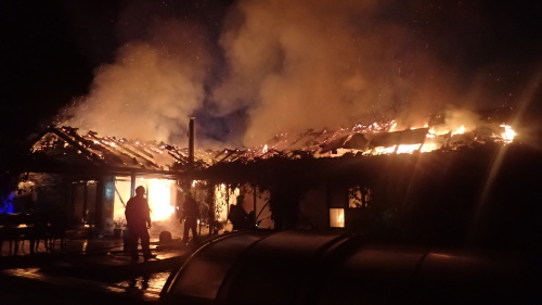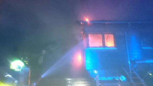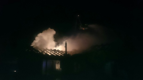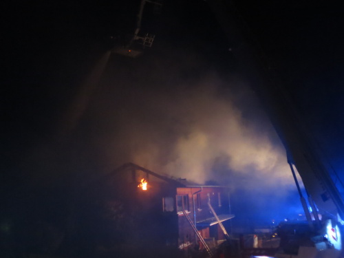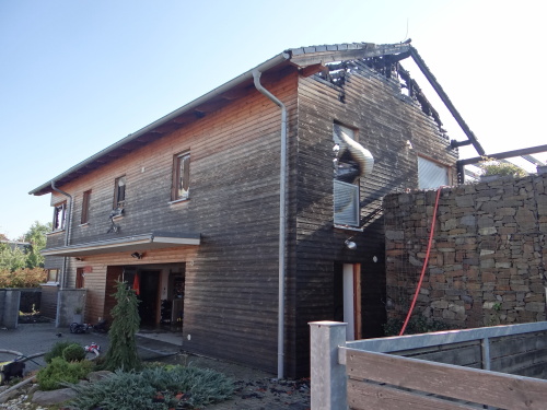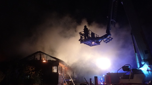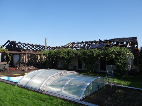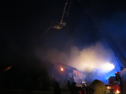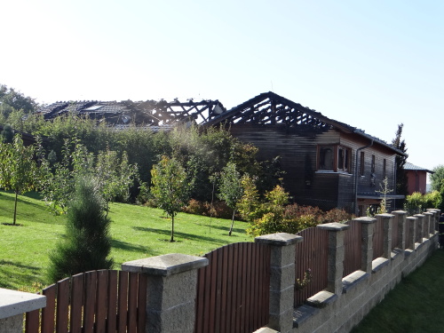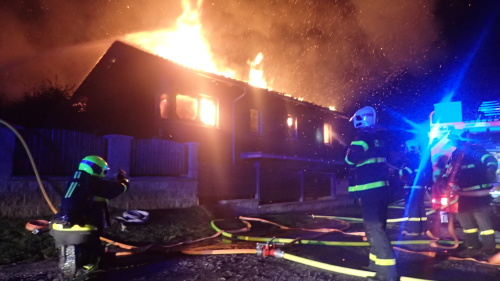 Už při příjezdu hasičů hořela celá sedlová střecha deset let staré dřevostavby rodinného domku ve tvaru písmene L. Uživatelku probudil praskot požáru v půdním prostoru a stačila včas vyběhnout, nikdo jiný zde v noci z neděle na pondělí nespal. Hasiči dostali oheň pod kontrolu asi za hodinu, když hasili i shora - pomocí automobilové plošiny. Vedle toho se zaměřili na ochranu okolních budov před požárem. Uhašeno měli za další hodinu a půl.