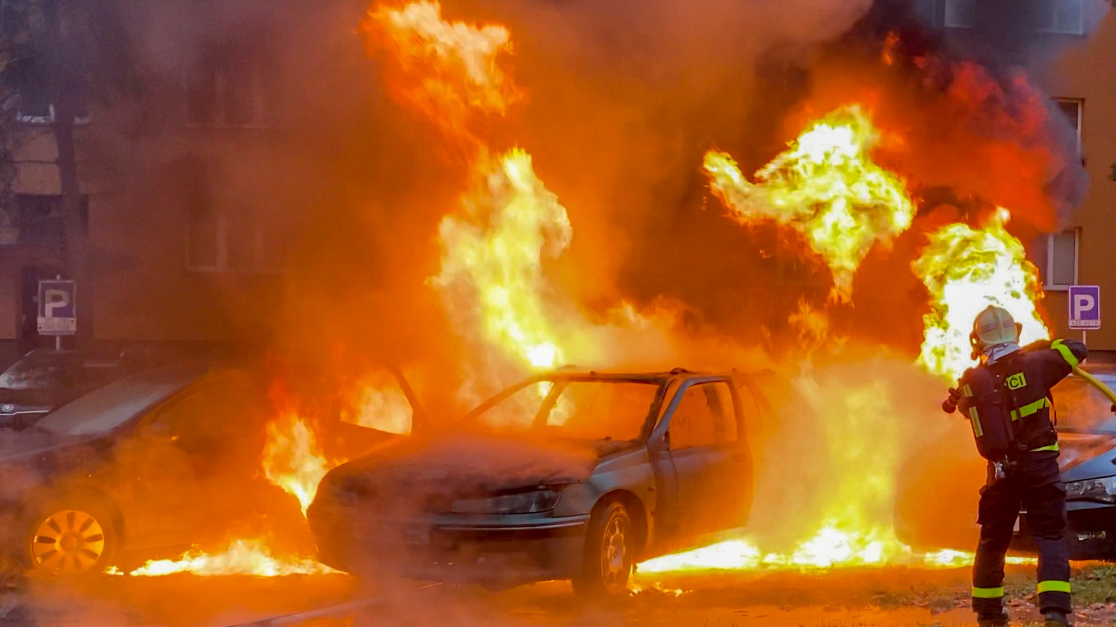 Ranní požár osobního automobilu v Ostravě poškodil i další vozy