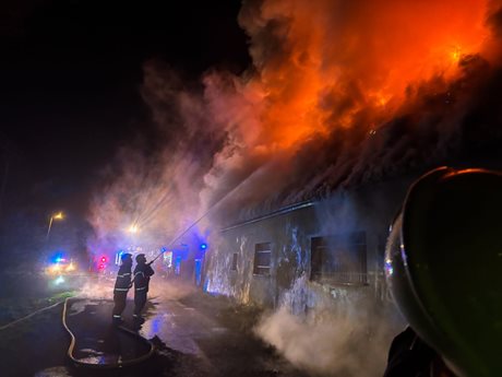 Krátce po půl jedné v noci v sobotu 11. dubna 2026 vyjížděli hasiči k požáru hospodářské budovy. Už při příjezdu prvních jednotek byla stavba o rozměrech přibližně patnáct krát deset metrů plně zasažena plameny. Oheň se navíc rozšířil i na střechu sousedního objektu, což výrazně zkomplikovalo zásah.