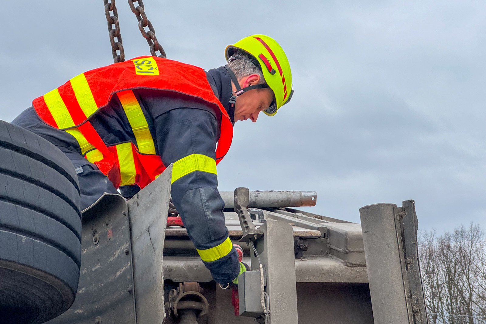 Hasiči po příjezdu k nehodě začali odklízet rozsypané obilí, neboť dálnice byla neprůjezdná. Tímto se hasičům povedlo zajistit průjezdnost alespoň jedním jízdním pruhem. Následně bylo třeba postavit převrácený vlek zpět na kola, proto si velitel zásahu povolal na místo vyprošťovací techniku ze stanice Ostrava-Zábřeh.