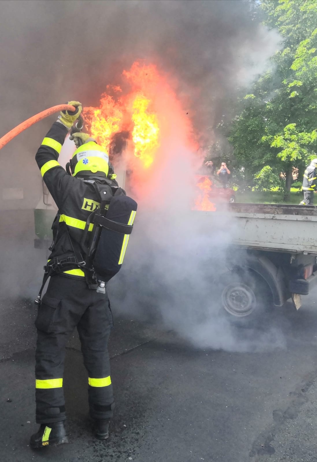 Hasiči z HZS Moravskoslezského kraje dostali požár kabiny vozidla z roku 1994 ve vítkovické Mostárenské ulici pod kontrolu už za dvě minuty, uhašení jim zabralo dalších šest minut.