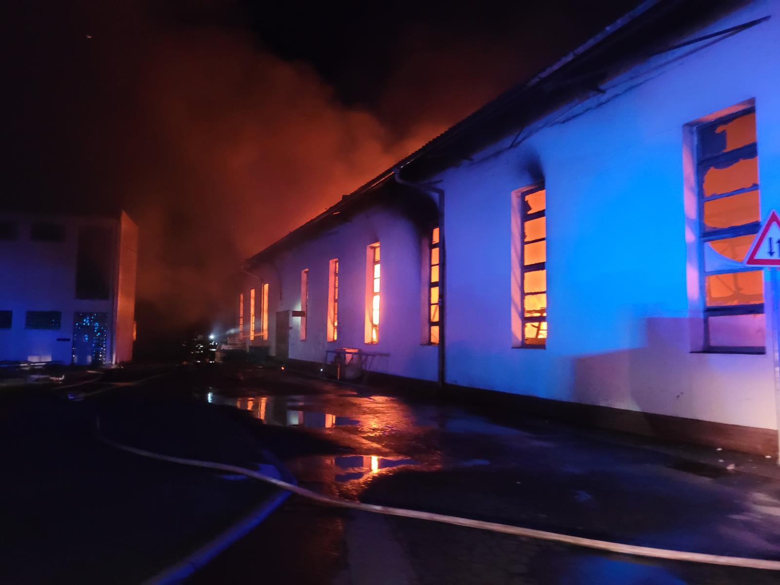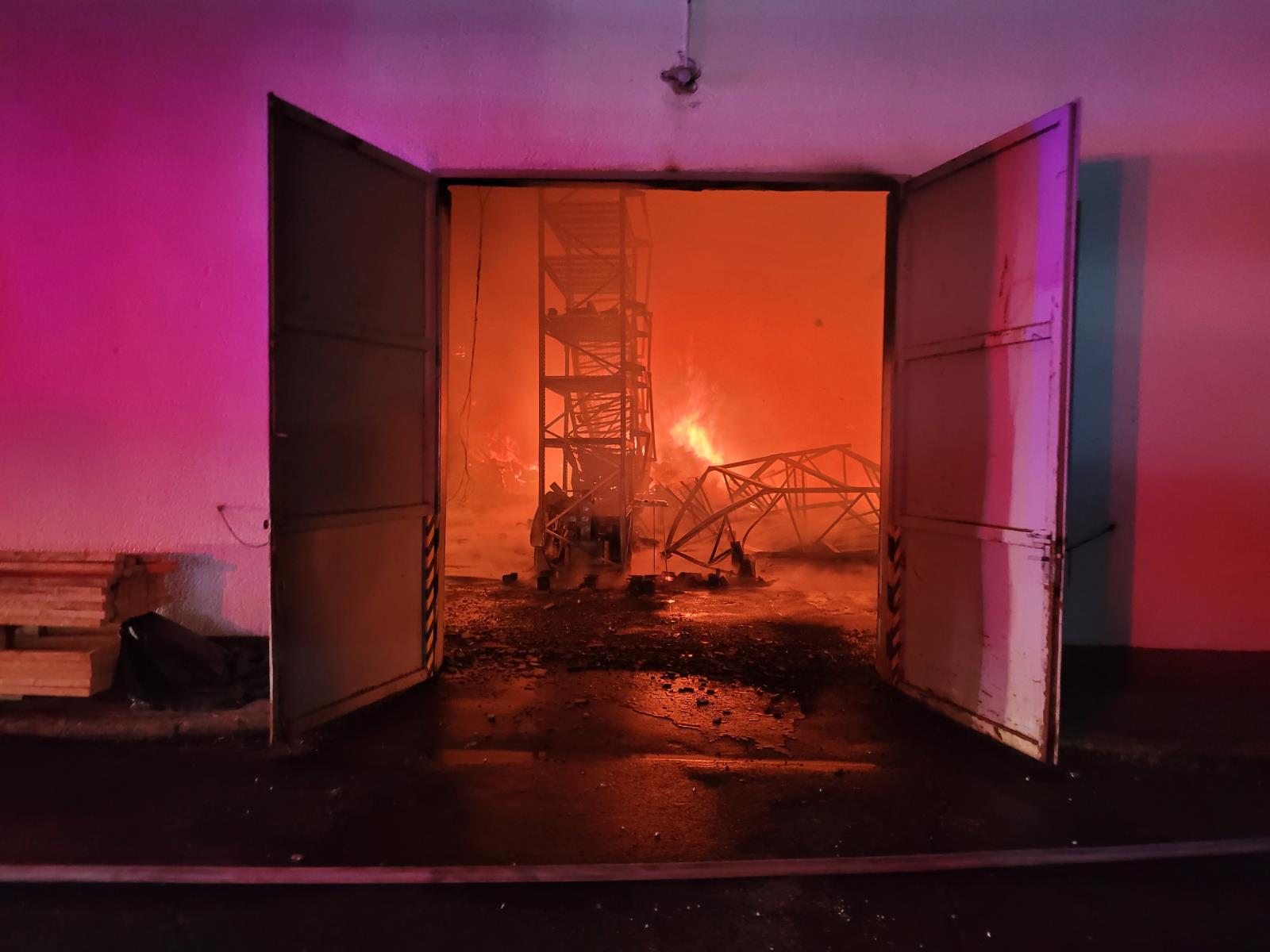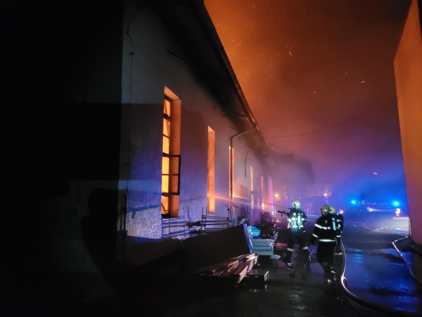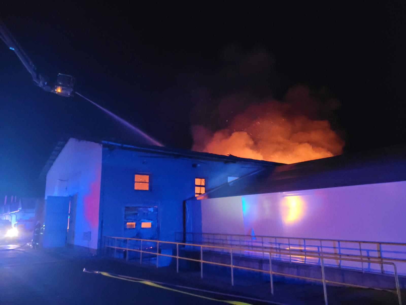 Už při příjezdu na místo události byla hala zasažena intenzivním plamenným hořením, propadla se střecha. Všech 37 zaměstnanců objekt bezpečně opustilo.