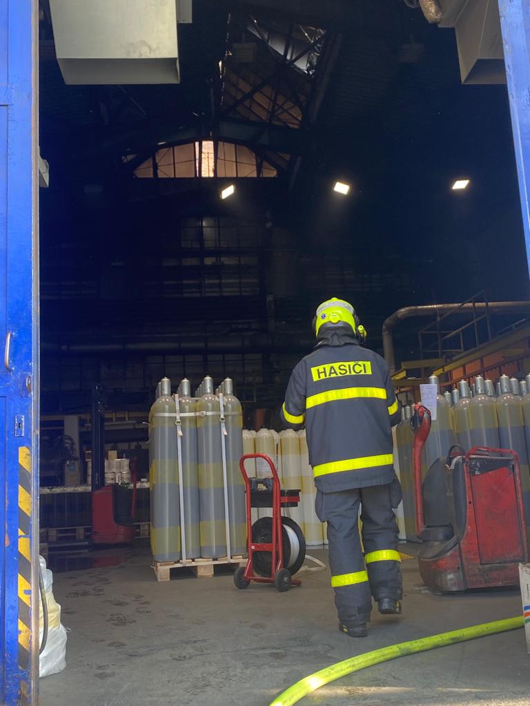 Hasiči ihned po příjezdu zjistili, že došlo k požáru v lakovně, ve které je umístěn i robot určený k nanášení barev na ocelové láhve. Hasiči nasadili na boj s plameny dva vodní proudy. Před příjezdem hasičů opustilo budovu 60 zaměstnanců firmy.