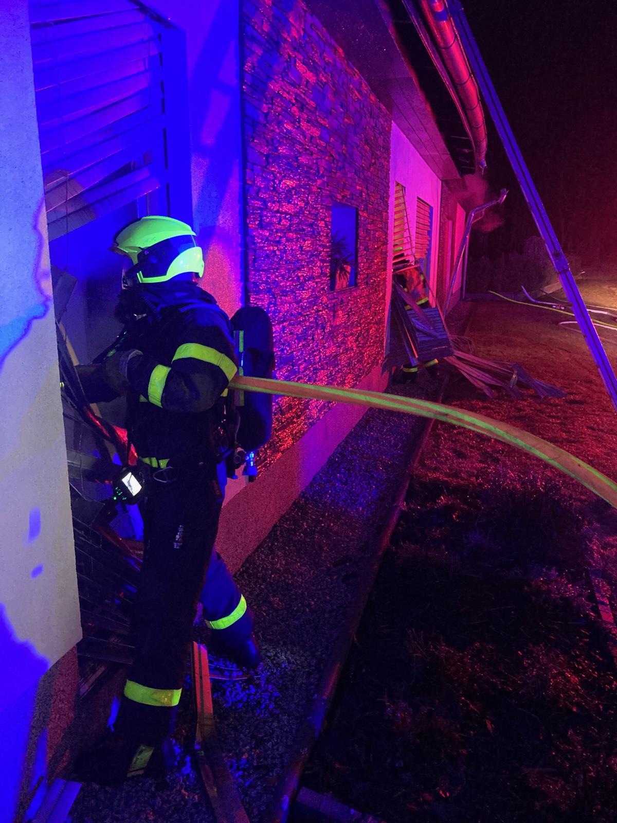 Už po příjezdu prvních jednotek na místo události byla požárem zasažena celá střecha domu o půdorysu přibližně 20 × 30 metrů, bez zranění a bezpečně ho opustili čtyři lidé.