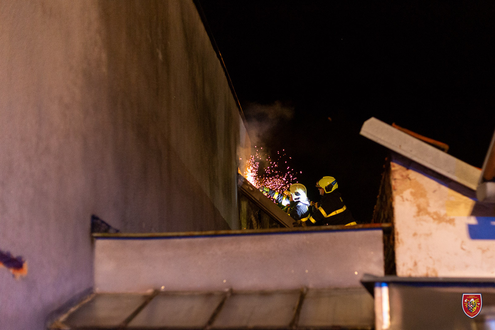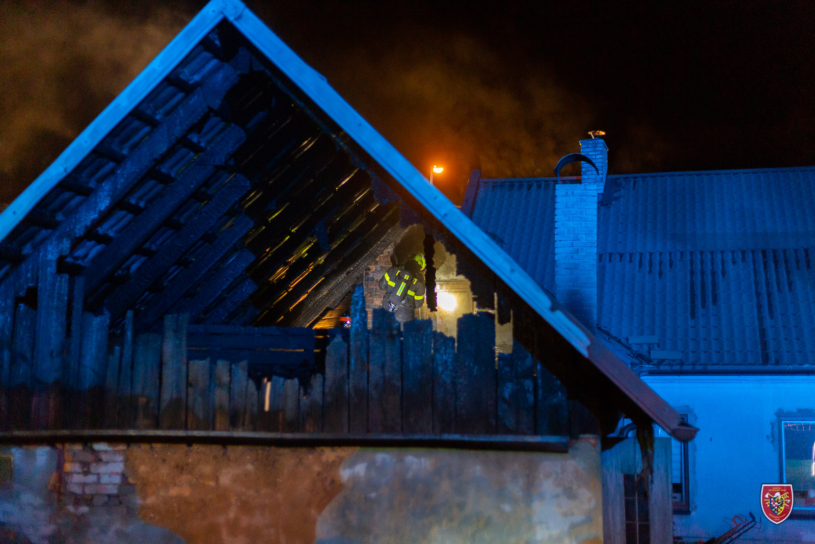 Pět jednotek hasičů zasahovalo v noci z pondělí 25. července 2022 na úterý v Žilině u Nového Jičína u požáru střechy dílny přistavěné k rodinnému domu.