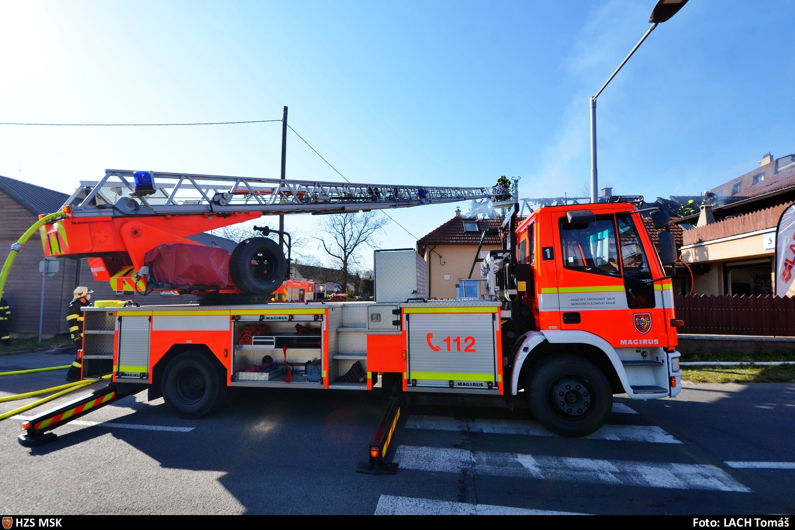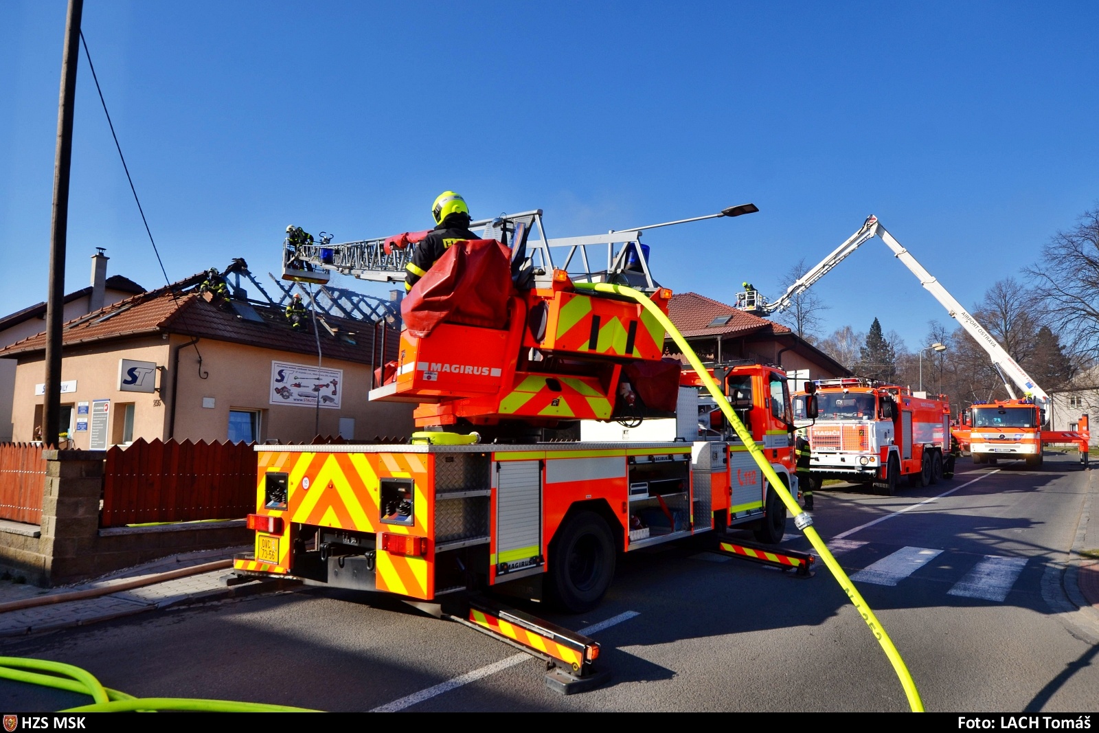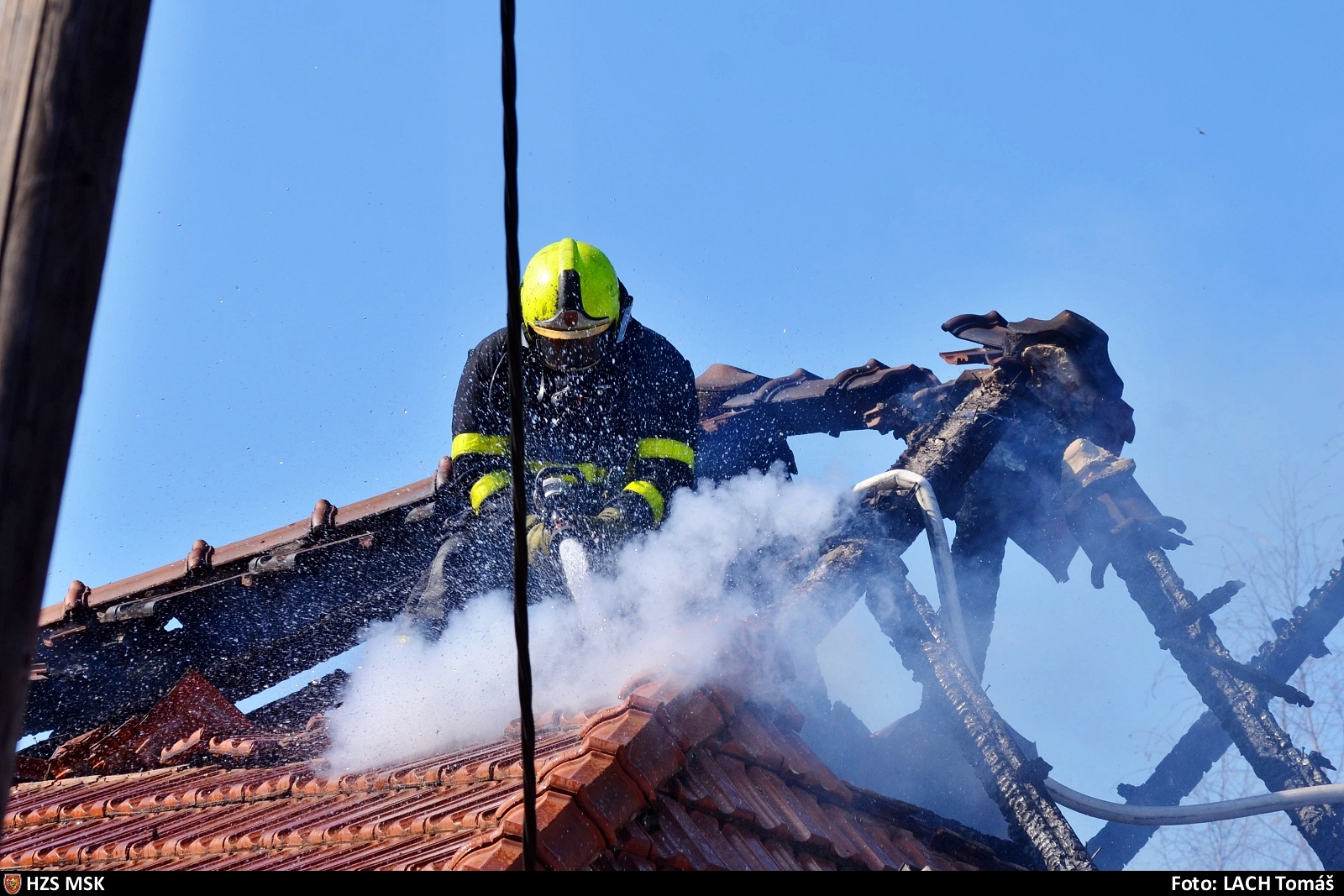 Už po příjezdu prvních jednotek na místo události šlehaly ze střechy objektu plameny. Zásah byl rozdělen na dva bojové úseky a v prvotní fázi bylo nasazeno pět vodních proudů - jak na samotné hašení, tak na ochranu před dalším šířením.