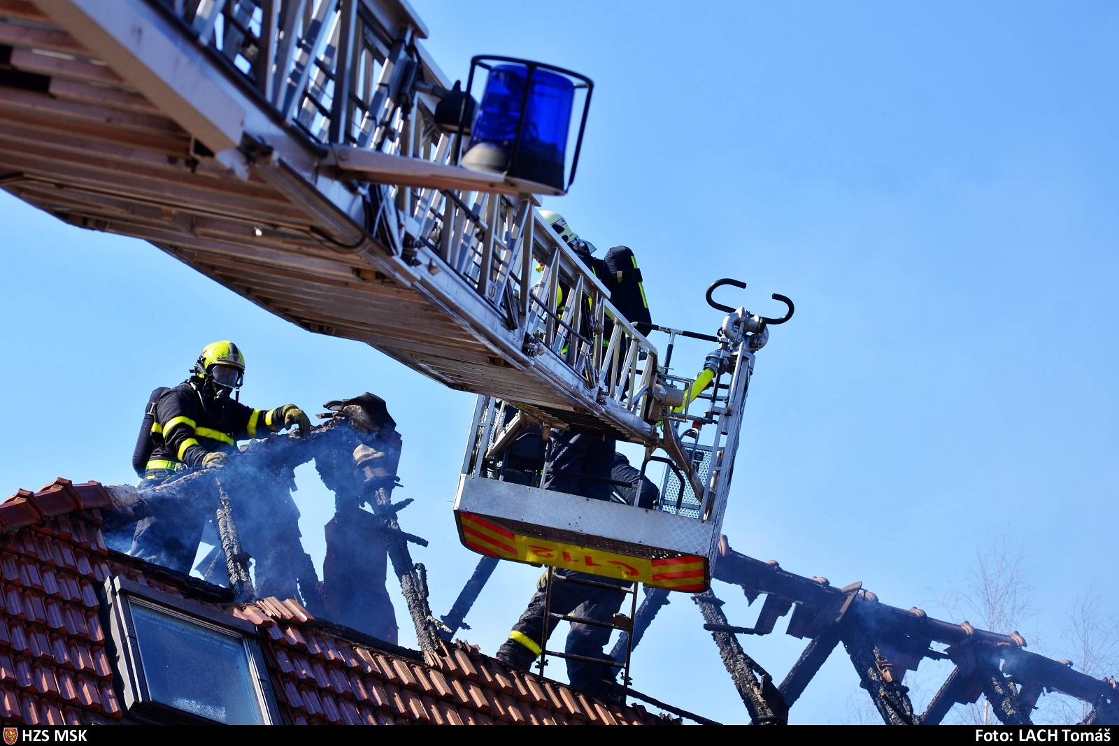 Požár byl lokalizován krátce po sedmnácté hodině. Zasahující jednotky musely rozebrat většinu požárem zasažené střechy, aby se dostaly na všechna skrytá ohniska a vyloučily další možné šíření. Pomáhaly jim s tím termokamery i výšková technika.