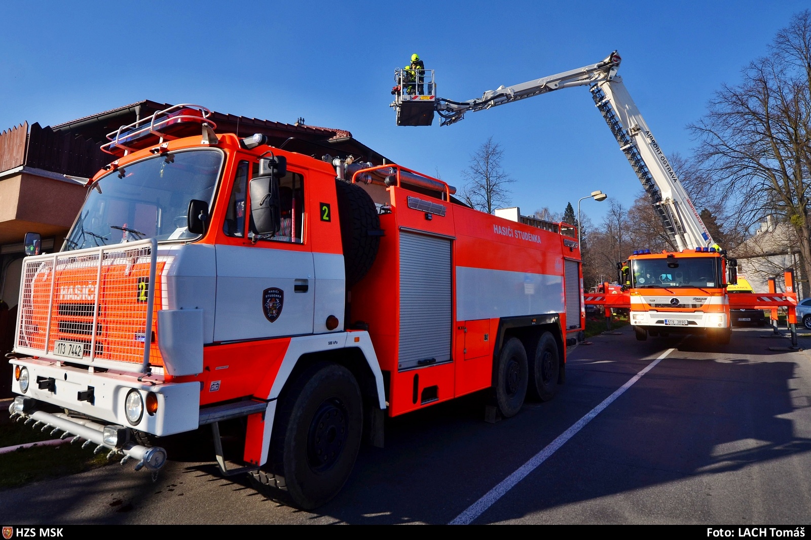 Událost byla na tísňovou linku ohlášena patnáct minut před šestnáctou hodinou. Operační středisko na místo vyslalo postupně osm hasičských jednotek - profesionální ze stanic HZS MSK v Bílovci, Novém Jičíně a z Letiště Leoše Janáčka Ostrava a dobrovolné hasiče ze Studénky, Bílovce, Příbora, Petřvaldu a Tísku.